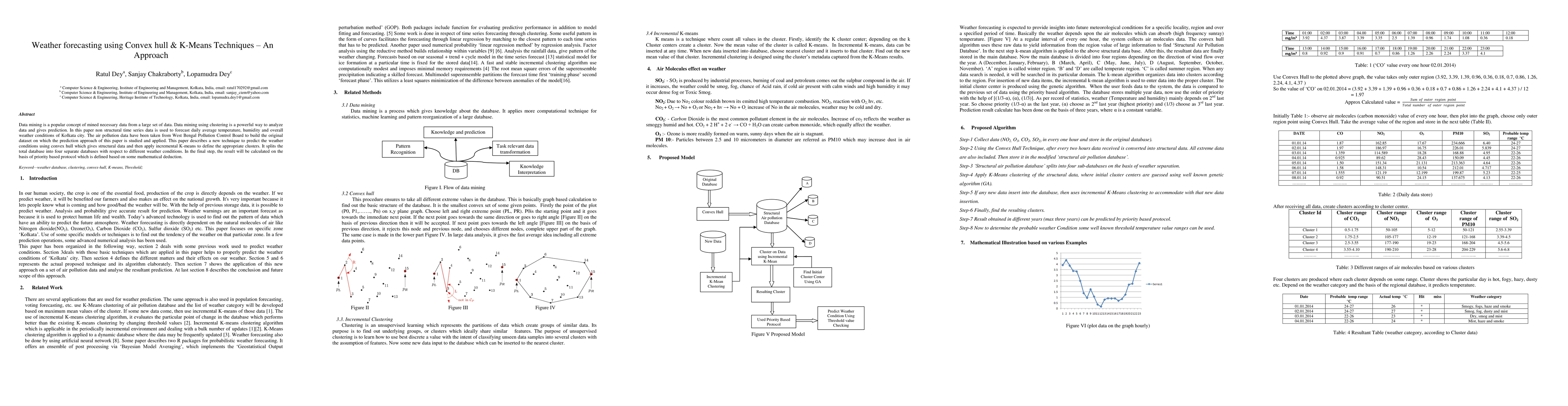 This paper proposes a novel weather forecasting method using convex hull and K-means clustering techniques to predict daily average temperature, humidity, and weather conditions in Kolkata. The approach involves creating structural data with convex hull and applying incremental K-means to segment the data into four distinct weather condition clusters.