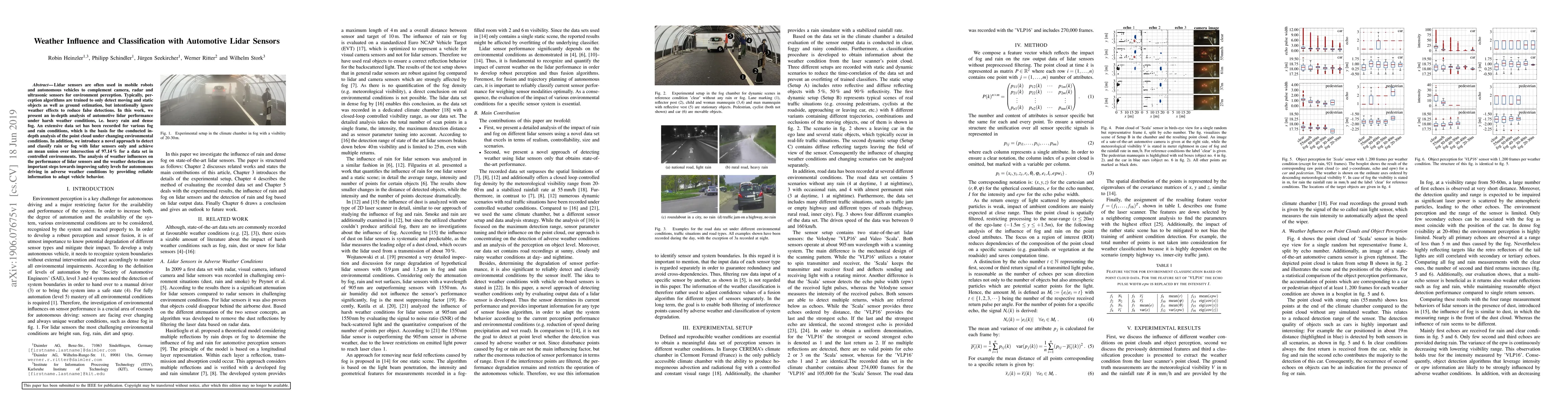 This paper analyzes the performance of automotive lidar sensors under harsh weather conditions like heavy rain and dense fog, and introduces a novel method to detect and classify these weather effects using lidar data, achieving a high accuracy of 97.14%. The findings aim to enhance the safety of autonomous driving by providing reliable data to adapt vehicle behavior in adverse weather.
