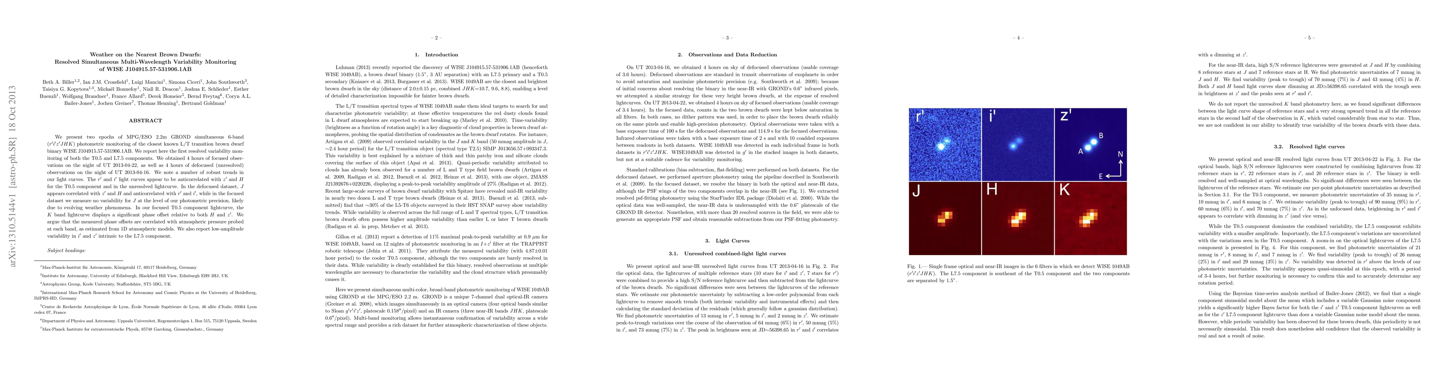 This study reports simultaneous multi-wavelength monitoring of the nearest brown dwarf binary WISE J104915.57-531906.1AB, revealing distinct variability trends in its components. The T0.5 component shows anticorelation between $r'$ and $i'$ with $z'$ and $H$, while the L7.5 component exhibits low-amplitude variability.