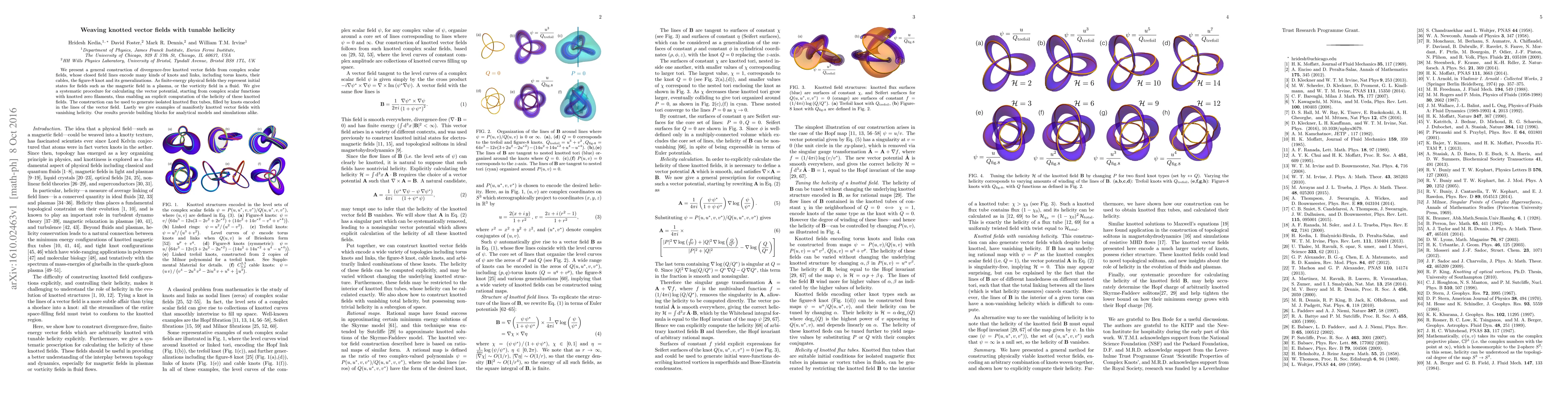 This paper constructs divergence-free knotted vector fields from complex scalar fields, enabling the representation of various knots and links. It provides a systematic method for computing the vector potential and helicity, offering a foundation for modeling physical fields like magnetic and vorticity fields in plasmas and fluids.