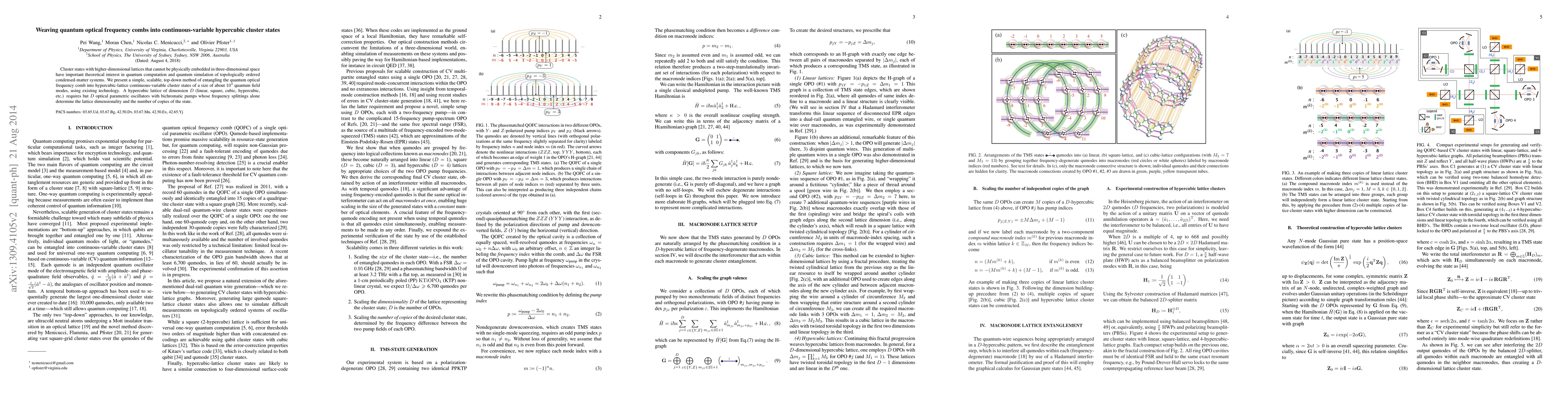 This paper proposes a scalable method to entangle quantum optical frequency combs into hypercubic-lattice continuous-variable cluster states, leveraging existing technology. The approach uses D optical parametric oscillators to create states of up to 10^4 quantum field modes, facilitating quantum computation and simulation of topologically ordered systems.
