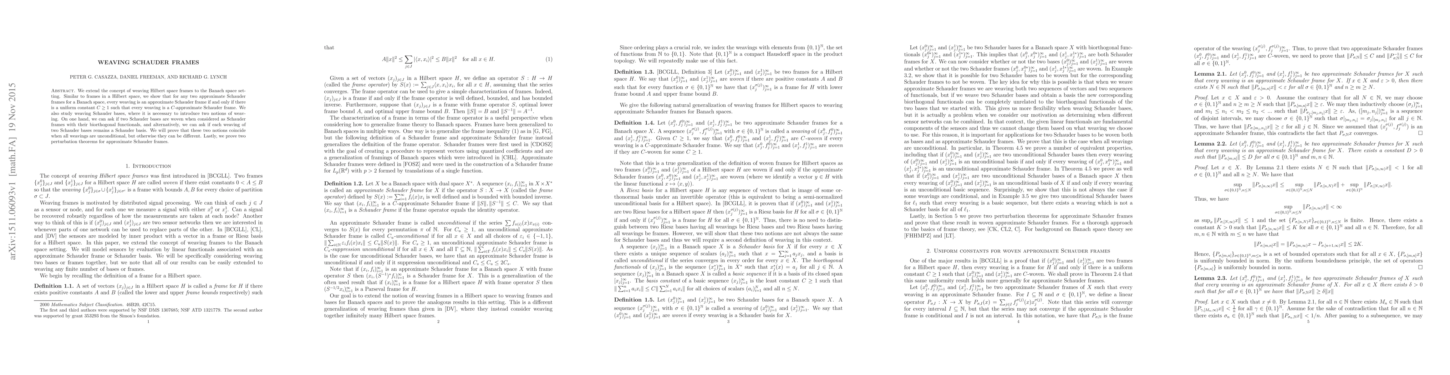 We extend the concept of weaving Hilbert space frames to the Banach space setting. Similar to frames in a Hilbert space, we show that for any two approximate Schauder frames for a Banach space, every weaving is an approximate Schauder frame if and only if there is a uniform constant $C\geq 1$ such that every weaving is a $C$-approximate Schauder frame. We also study weaving Schauder bases, where it is necessary to introduce two notions of weaving. On one hand, we can ask if two Schauder bases are woven when considered as Schauder frames with their biorthogonal functionals, and alternatively, we can ask if each weaving of two Schauder bases remains a Schauder basis. We will prove that these two notions coincide when all weavings are unconditional, but otherwise they can be different. Lastly, we prove two perturbation theorems for approximate Schauder frames.