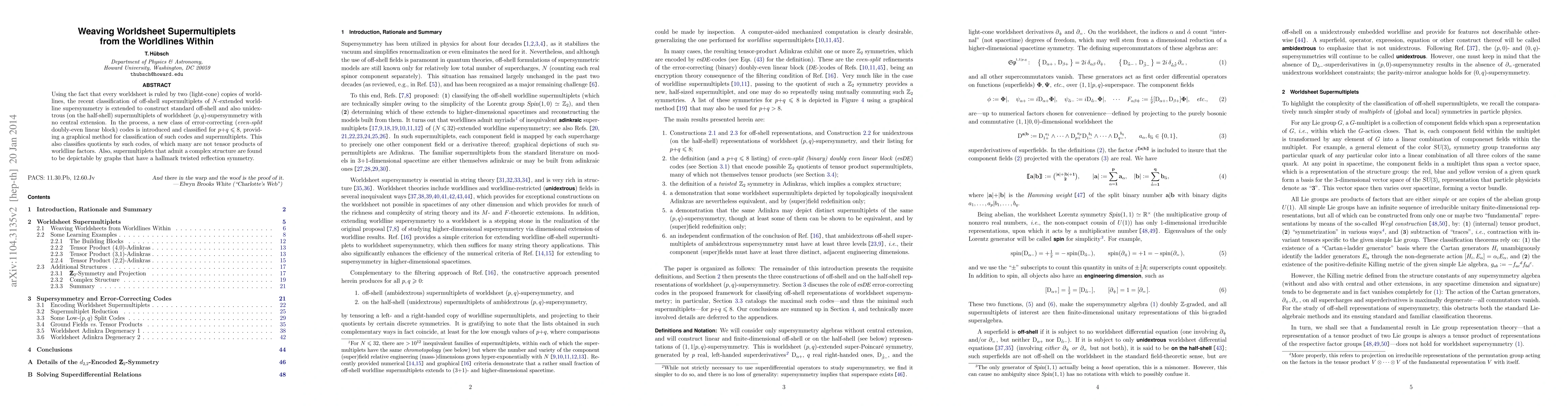 Using the fact that every worldsheet is ruled by two (light-cone) copies of worldlines, the recent classification of off-shell supermultiplets of N-extended worldline supersymmetry is extended to construct standard off-shell and also unidextrous (on the half-shell) supermultiplets of worldsheet (p,q)-supersymmetry with no central extension. In the process, a new class of error-correcting (even-split doubly-even linear block) codes is introduced and classified for $p+q \leq 8$, providing a graphical method for classification of such codes and supermultiplets. This also classifies quotients by such codes, of which many are not tensor products of worldline factors. Also, supermultiplets that admit a complex structure are found to be depictable by graphs that have a hallmark twisted reflection symmetry.