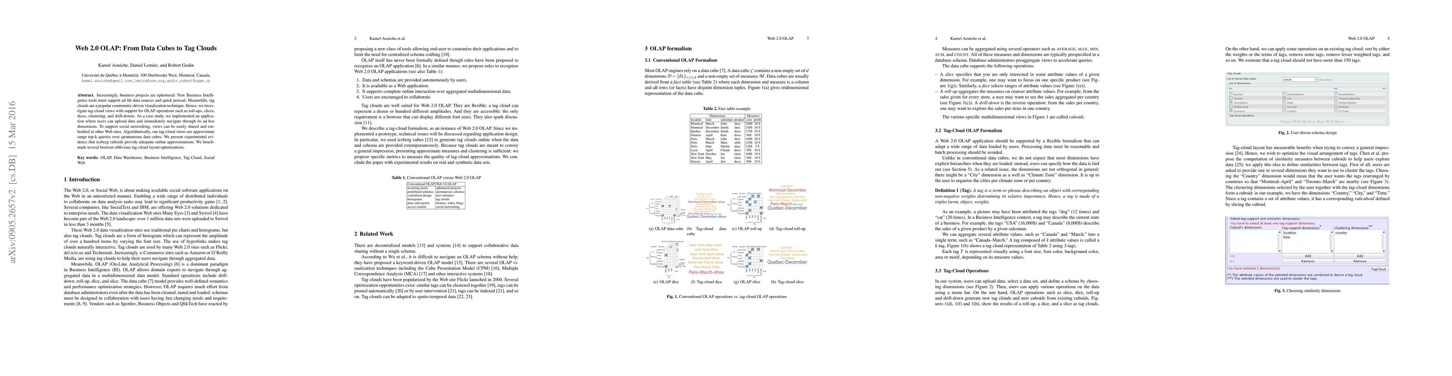 This paper explores integrating OLAP operations with tag clouds for dynamic, ad-hoc data analysis, implementing a web application for user-uploaded data. It demonstrates the effectiveness of iceberg cuboids for approximate range top-k queries and evaluates tag-cloud layout optimizations.