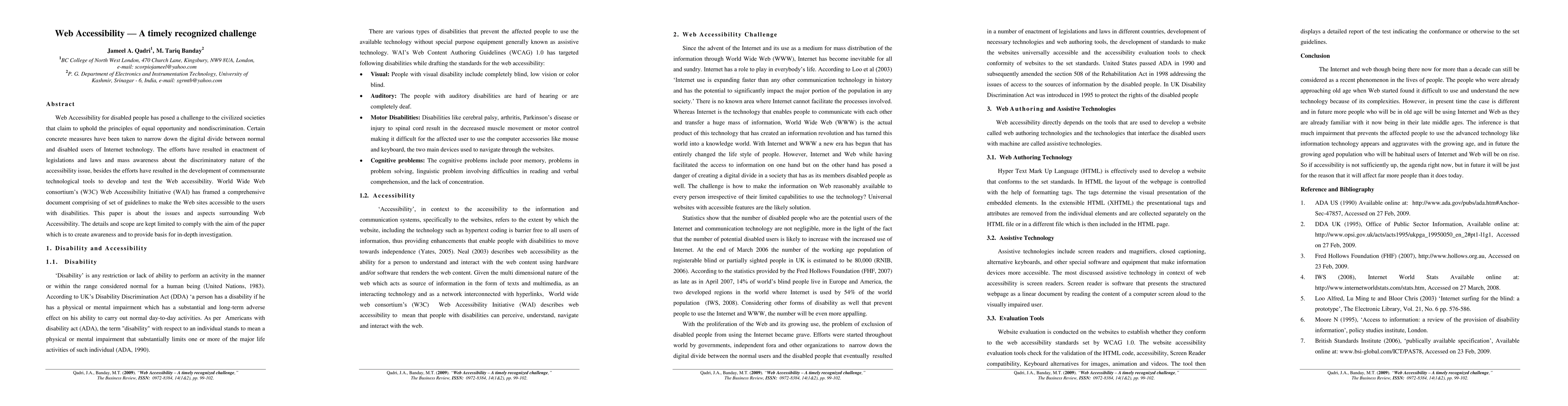 This paper explores the challenges of web accessibility for disabled individuals, highlighting legislative efforts, technological advancements, and the development of W3C's WAI guidelines to promote equal internet access. It aims to raise awareness and serve as a foundation for further research.