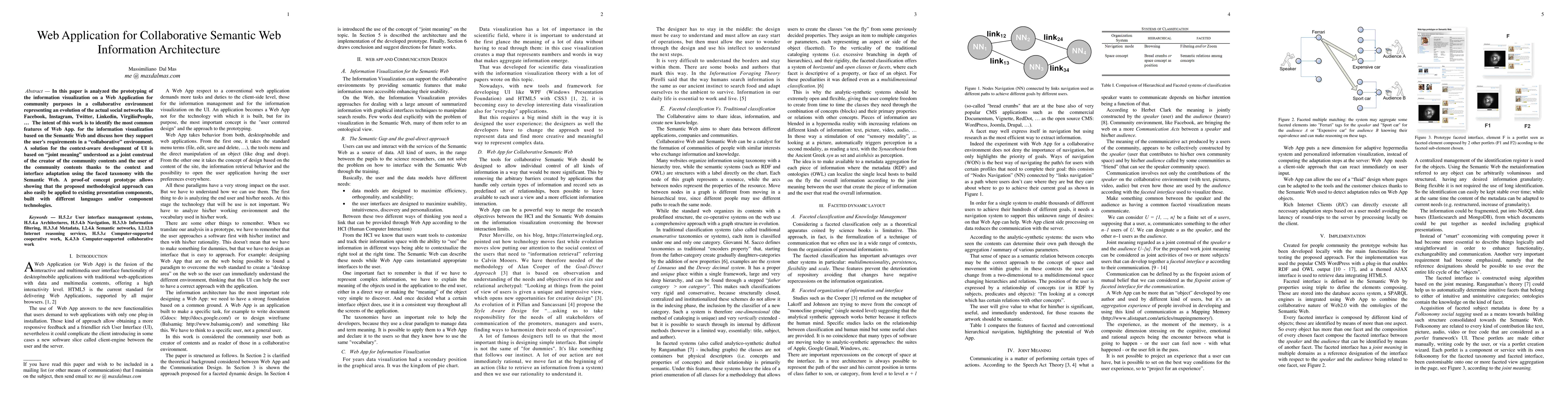 In this paper is analyzed the prototyping of the information visualization on a Web Application for community purposes in a collaborative environment representing an evolution of the actual social networks like Facebook, Instagram, Twitter, Linkedin, VirgilioPeople,... The intent of this work is to identify the most common features of Web App for the information visualization based on the Semantic Web and discuss how they support the user's requirements in a "collaborative" environment. A solution for the context-aware development of UI is based on "joint meaning" understood as a joint construal of the creator of the community contents and the user of the community contents thanks to the context and interface adaptation using the faced taxonomy with the Semantic Web. A proof-of concept prototype allows showing that the proposed methodological approach can also easily be applied to existing presentation components, built with different languages and/or component technologies.