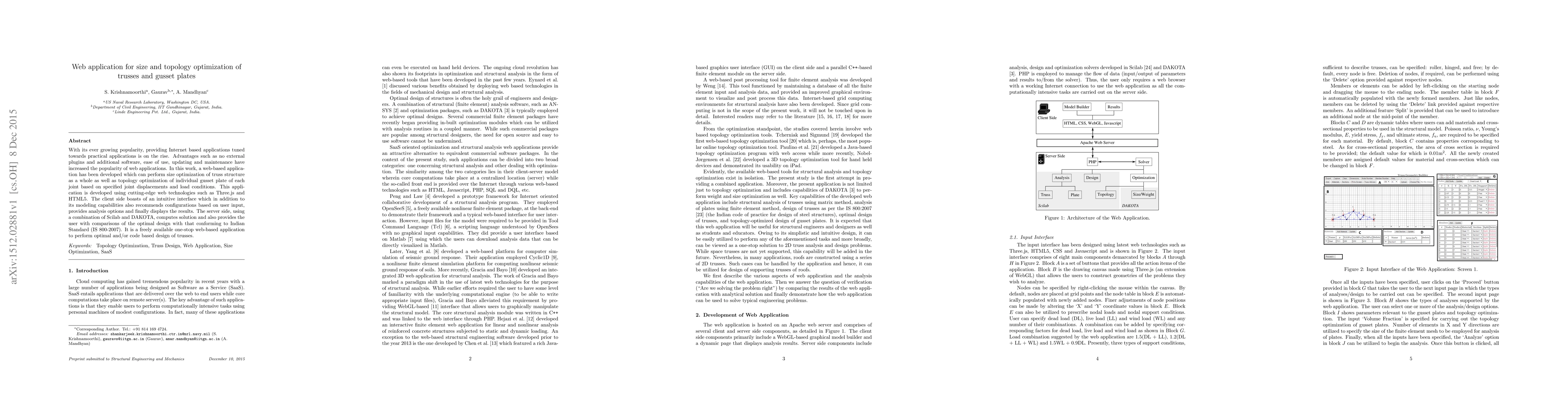 A web application has been developed to optimize truss structures and gusset plates for size and topology optimization, providing an intuitive interface and comparisons with Indian Standard codes.