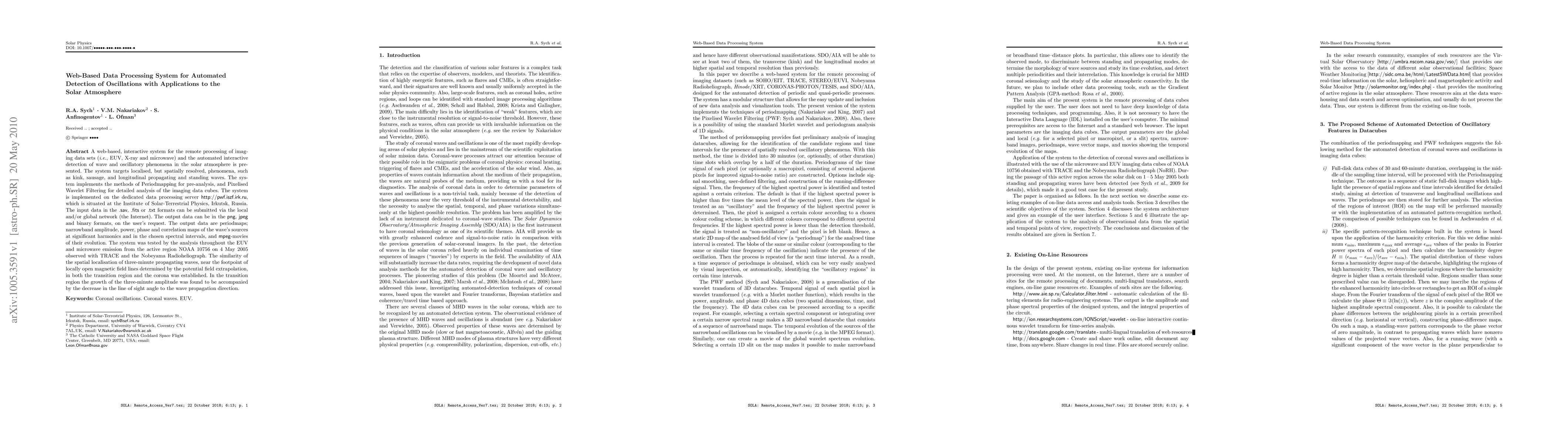 A web-based, interactive system for the remote processing of imaging data sets (i.e., EUV, X-ray and microwave) and the automated interactive detection of wave and oscillatory phenomena in the solar atmosphere is presented.The system targets localised, but spatially resolved, phenomena, such as kink, sausage, and longitudinal propagating and standing waves. The system implements the methods of Periodmapping for pre-analysis, and Pixelised Wavelet Filtering for detailed analysis of the imaging data cubes. The system is implemented on the dedicated data processing server http://pwf.iszf.irk.ru, which is situated at the Institute of Solar-Terrestrial Physics, Irkutsk, Russia. The input data in the .sav, .fits or .txt formats can be submitted via the local and/or global network (the Internet). The output data can be in the png, jpeg and binary formats, on the user's request. The output data are periodmaps; narrowband amplitude, power, phase and correlation maps of the wave's sources at significant harmonics and in the chosen spectral intervals, and mpeg-movies of their evolution. The system was tested by the analysis throughout the EUV and microwave emission from the active region NOAA 10756 on 4 May 2005 observed with TRACE and the Nobeyama Radioheliograph. The similarity of the spatial localisation of three-minute propagating waves, near the footpoint of locally open magnetic field lines determined by the potential field extrapolation, in both the transition region and the corona was established. In the transition region the growth of the three-minute amplitude was found to be accompanied by the decrease in the line of sight angle to the wave propagation direction.