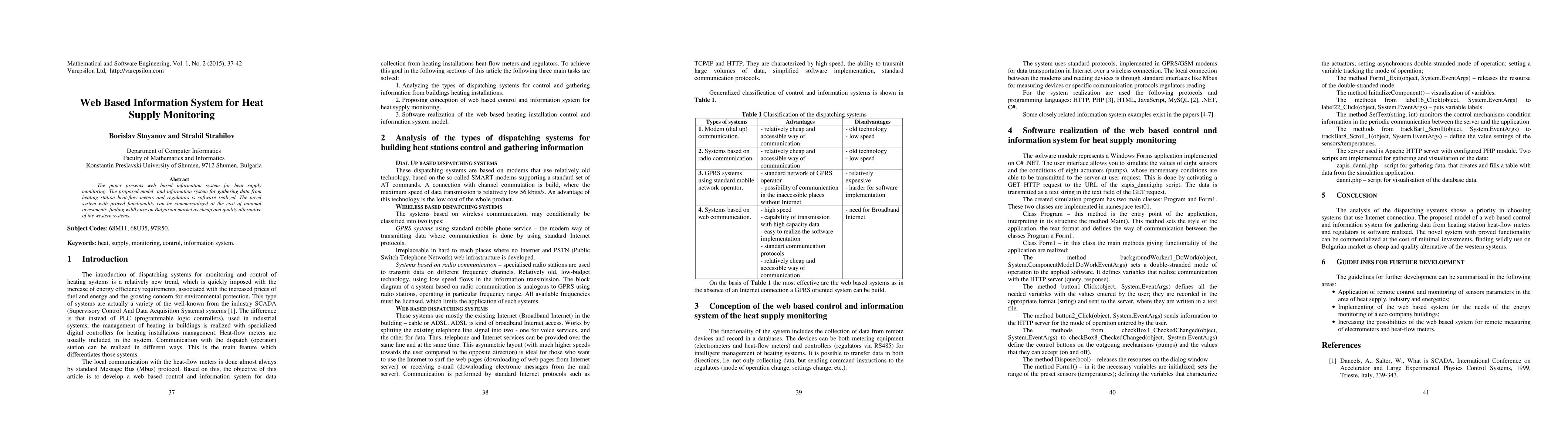 The research introduces a cost-effective, web-based information system for monitoring heat supply, utilizing data from heating station heat-flow meters and regulators. The system, proven functional, is poised for commercialization and widespread use in Bulgaria as a budget-friendly alternative to existing western systems.