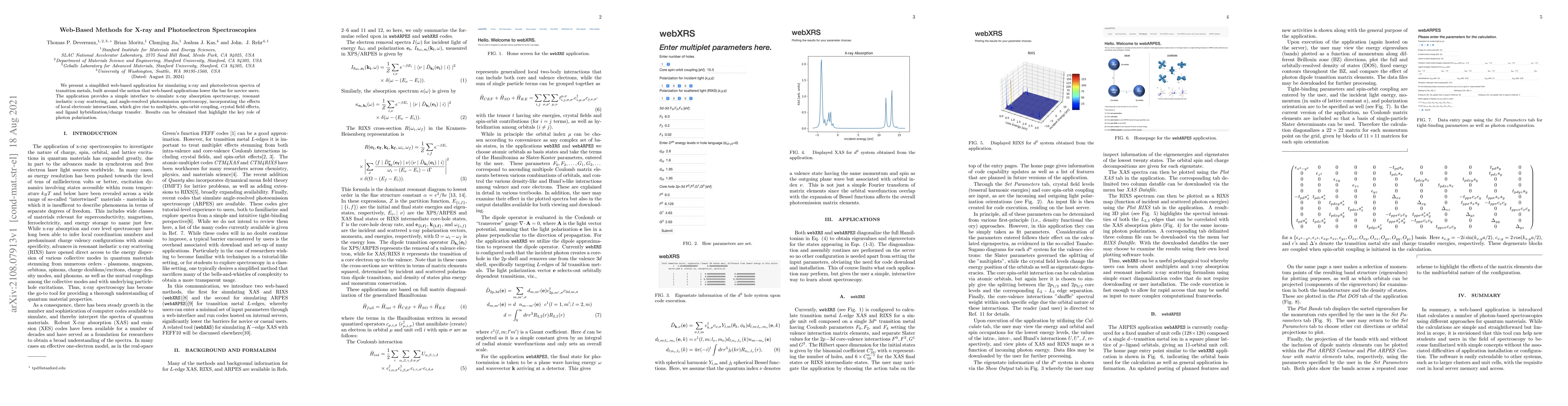 We present a simplified web-based application for simulating x-ray and photoelectron spectra of transition metals, built around the notion that web-based applications lower the bar for novice users. The application provides a simple interface to simulate x-ray absorption spectroscopy, resonant inelastic x-ray scattering, and angle-resolved photoemission spectroscopy, incorporating the effects of local electronic interactions, which give rise to multiplets, spin-orbit coupling, crystal field effects, and ligand hybridization/charge transfer. Results can be obtained that highlight the key role of photon polarization.