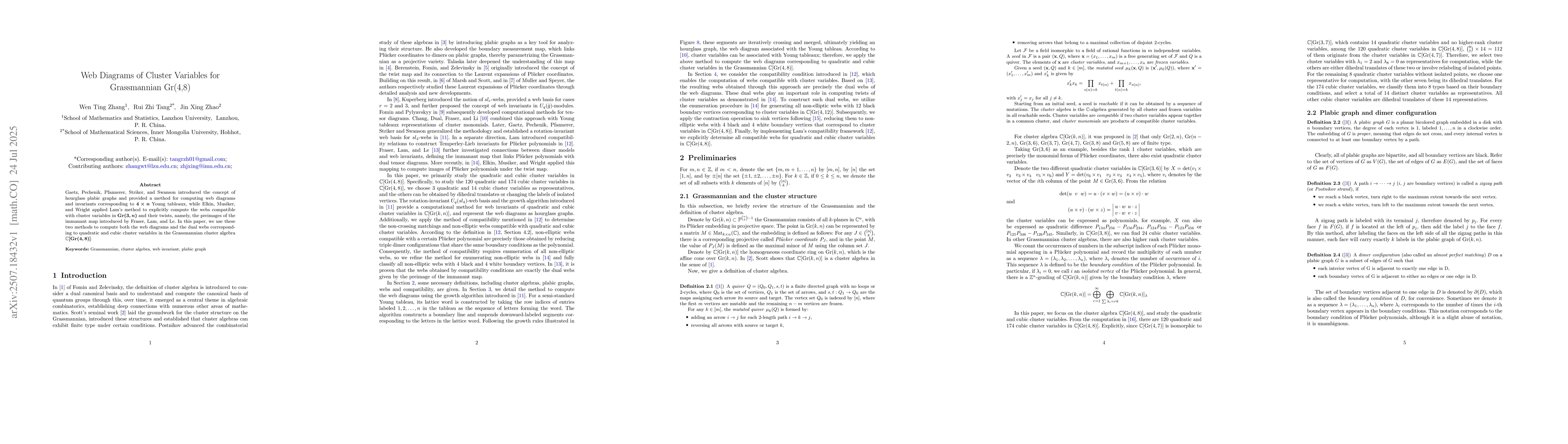 Gaetz, Pechenik, Pfannerer, Striker, and Swanson introduced the concept of hourglass plabic graphs and provided a method for computing web diagrams and invariants corresponding to $4\times n$ Young tableaux, while Elkin, Musiker, and Wright applied Lam's method to explicitly compute the webs compatible with cluster variables in Gr(3,n) and their twists, namely, the preimages of the immanant map introduced by Fraser, Lam, and Le. In this paper, we use these two methods to compute both the web diagrams and the dual webs corresponding to quadratic and cubic cluster variables in the Grassmannian cluster algebra C[Gr(4,8)].