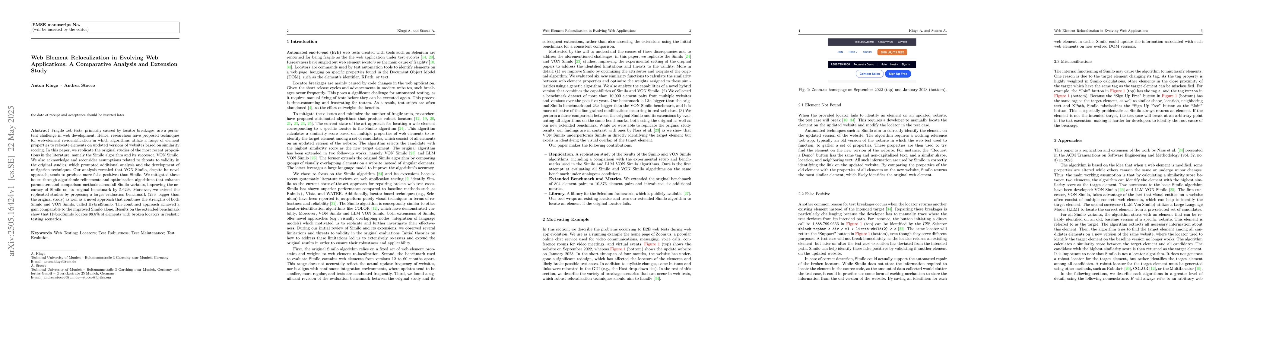 This research paper replicates and extends studies on web-element re-identification techniques, Similo and VON Similo, addressing their shortcomings through algorithmic refinements and optimization. The improved Similo shows a 5.62% accuracy gain, while a new HybridSimilo approach combines strengths of both, successfully locating 98.8% of elements with broken locators in larger, more realistic testing scenarios.