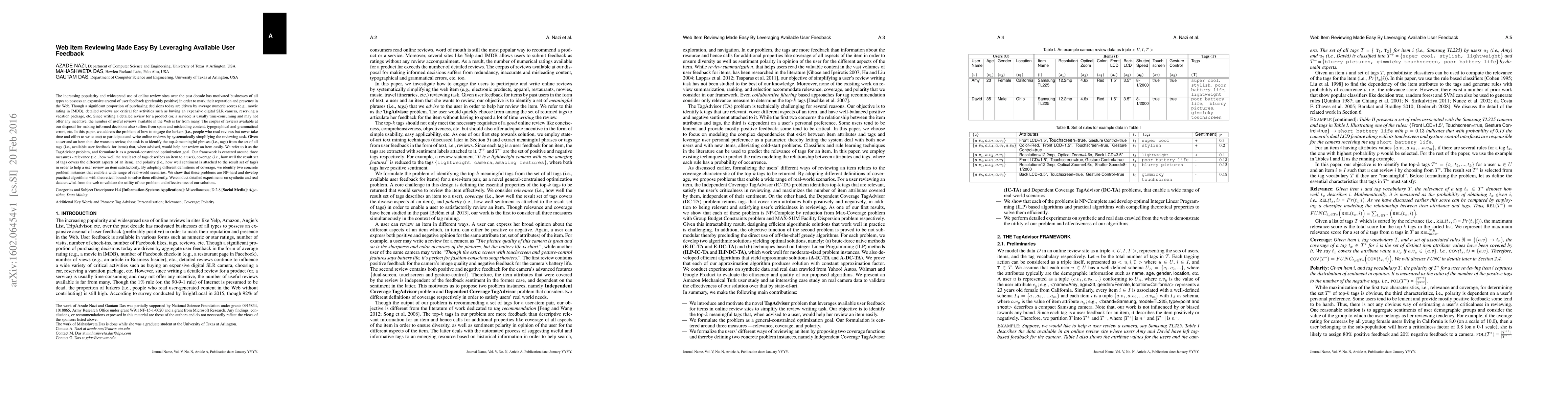 This paper proposes a framework to identify top-$k$ meaningful phrases/tags for simplifying detailed review writing by leveraging user feedback. It uses optimization based on relevance, coverage, and polarity to generate helpful tags, develops efficient algorithms, and validates the approach through experiments on both synthetic and real-world data.