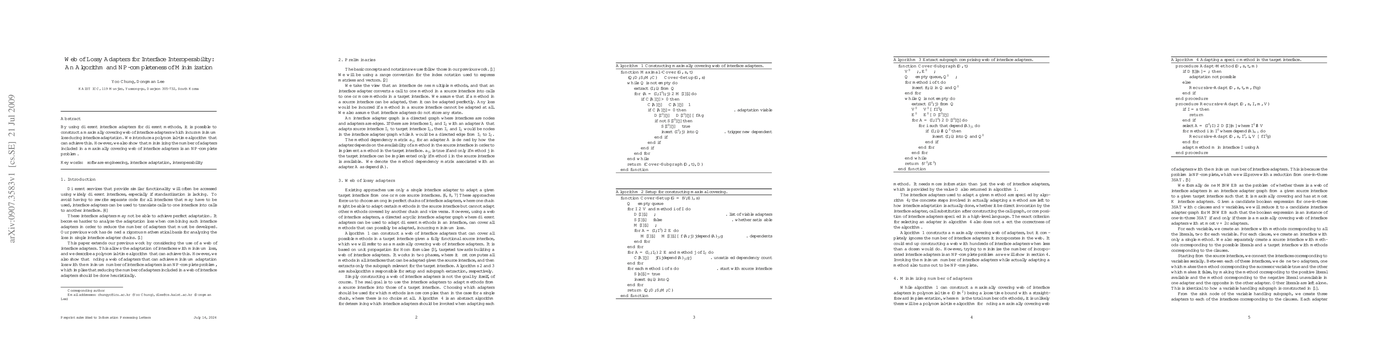 Researchers developed a polynomial-time algorithm to minimize the number of interface adapters in a web that incurs minimal loss during adaptation, but found the problem of minimizing this number is NP-complete.