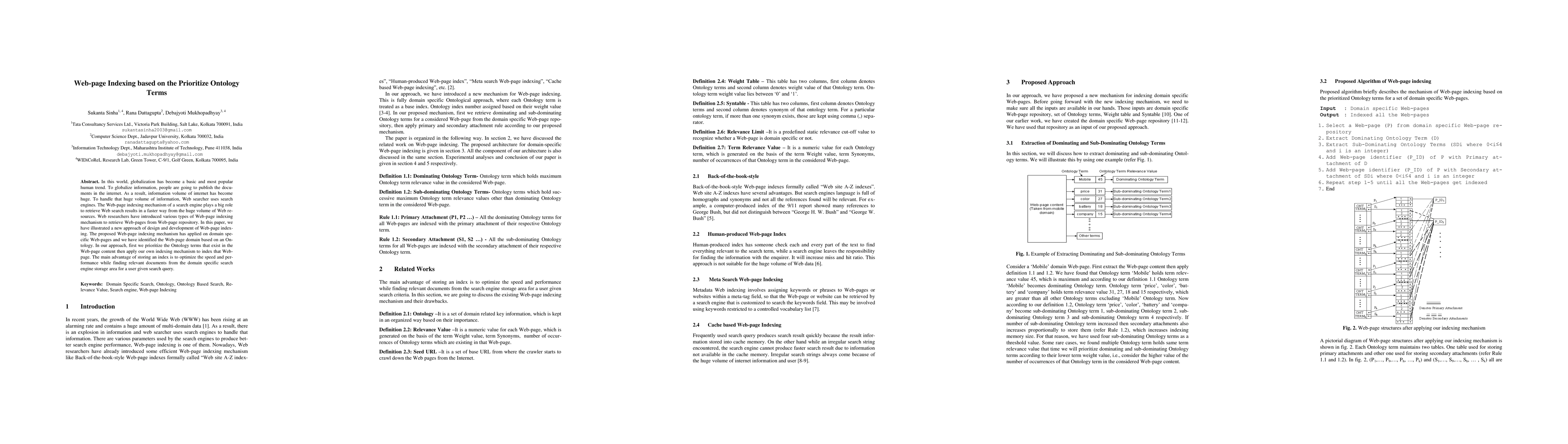This paper proposes a new webpage indexing mechanism prioritizing ontology terms for domain-specific webpages to optimize search engine performance. The method involves identifying and prioritizing ontology terms within the webpage content before indexing, aiming to enhance the speed and efficiency of retrieving relevant documents for user queries.