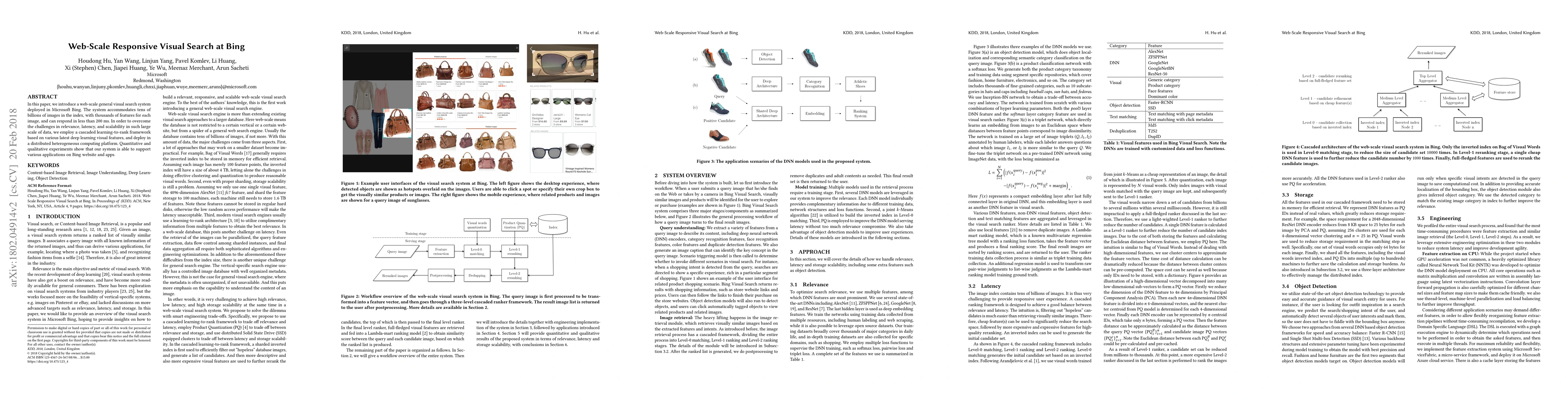 This paper presents a web-scale visual search system in Microsoft Bing, utilizing a cascaded learning-to-rank framework with deep learning features to handle tens of billions of images and deliver responses in under 200 ms, demonstrating effectiveness through distributed computing and extensive testing.