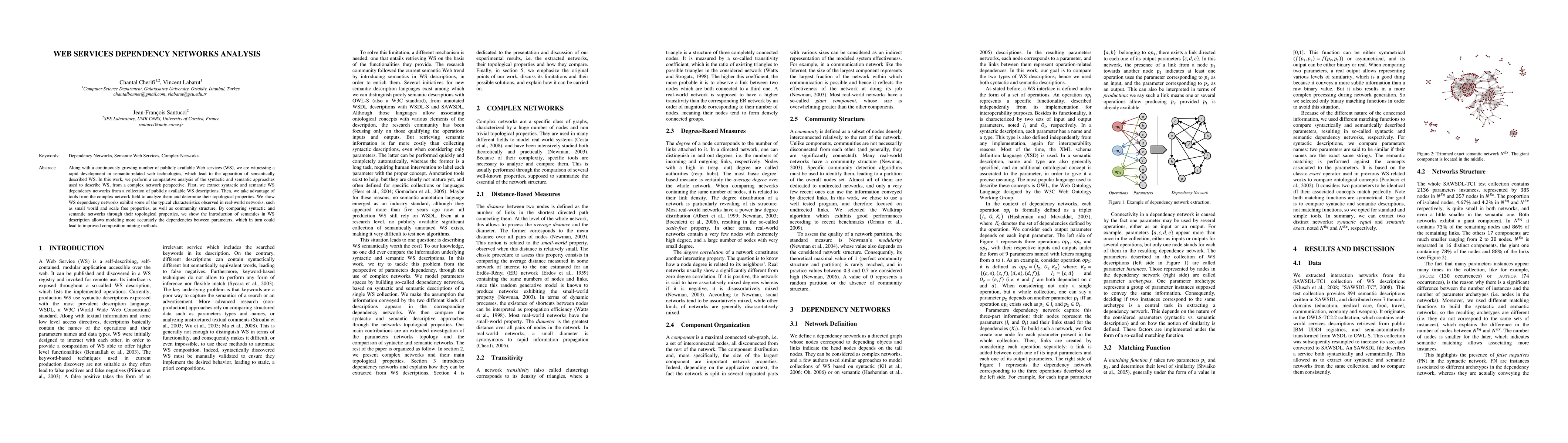 This paper analyzes syntactic and semantic Web services (WS) dependency networks using complex network theory, revealing that semantic networks better model dependencies and could enhance composition mining. The study finds that both types of networks exhibit small-world and scale-free properties, along with community structures.