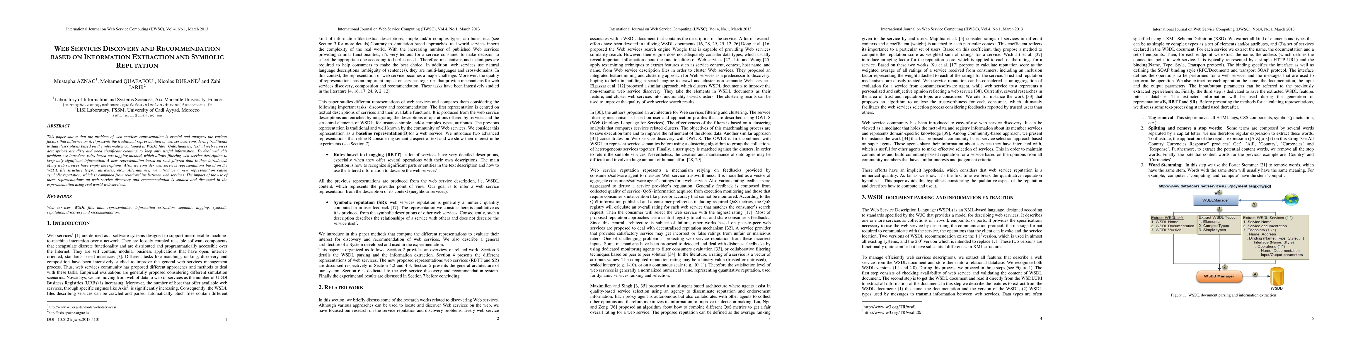 The paper introduces a rules-based text tagging method (RBTT) for filtering web service descriptions and a symbolic reputation (SR) model that considers relationships between services for improved web service discovery and recommendation.