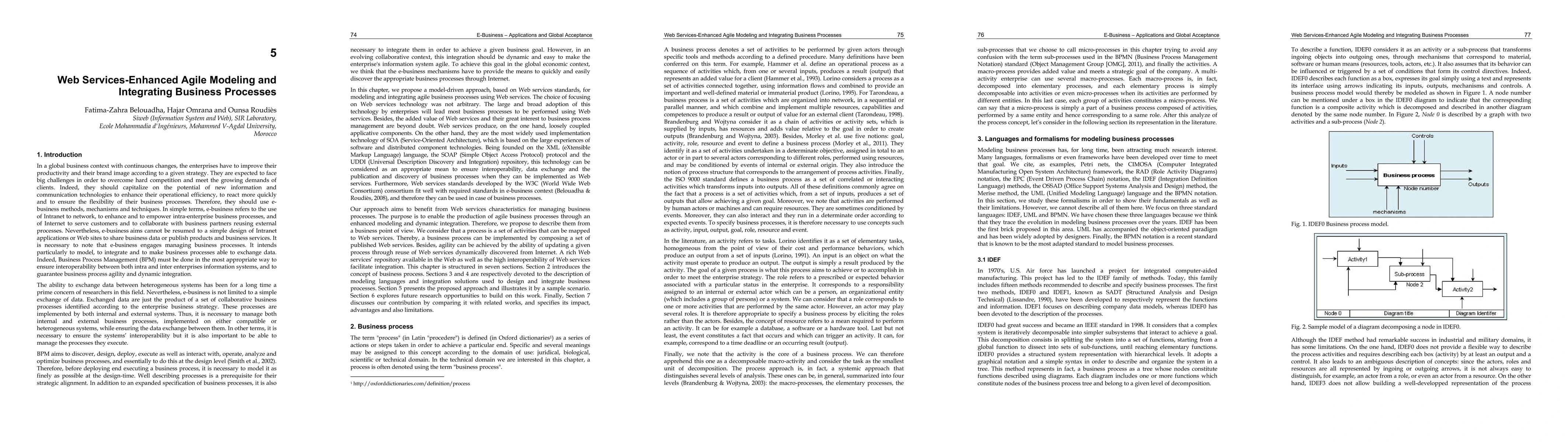 This paper proposes a Web services-based approach to enhance agile modeling and integration of enterprise business processes, leveraging standards like WSDL, SAWSDL, WS-Policy, BPMN, and UML. It introduces a metamodel for dynamic integration and addresses Web services discovery, utilizing semantic matching and selection mechanisms for executable, flexible processes.