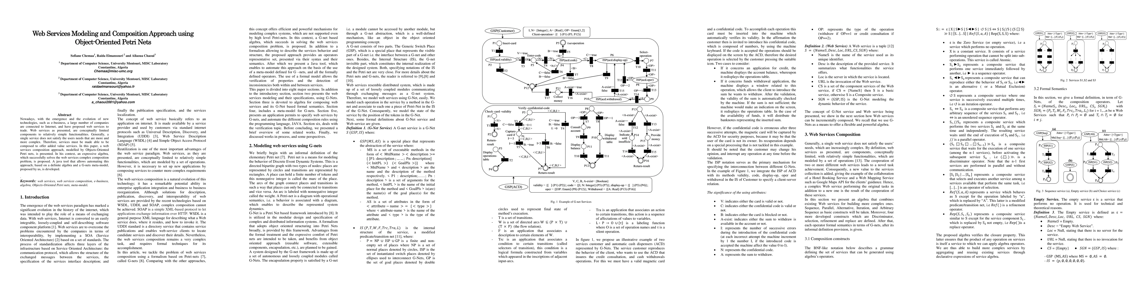 This paper proposes a web services composition approach using Object-Oriented Petri nets to model complex service compositions. It introduces an expressive algebra and a Java tool to automate the composition process based on a G-nets meta-model.
