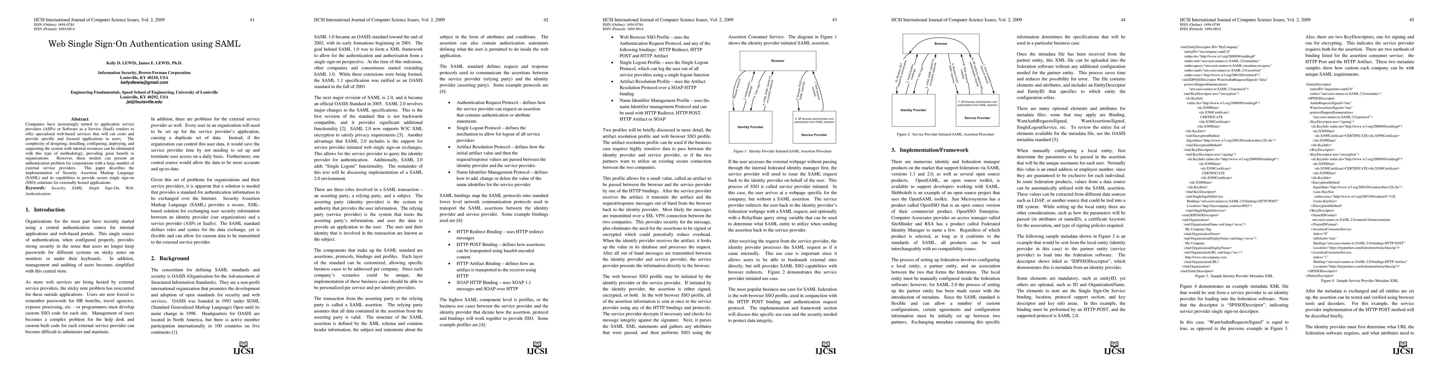 Companies have increasingly turned to application service providers (ASPs) or Software as a Service (SaaS) vendors to offer specialized web-based services that will cut costs and provide specific and focused applications to users. The complexity of designing, installing, configuring, deploying, and supporting the system with internal resources can be eliminated with this type of methodology, providing great benefit to organizations. However, these models can present an authentication problem for corporations with a large number of external service providers. This paper describes the implementation of Security Assertion Markup Language (SAML) and its capabilities to provide secure single sign-on (SSO) solutions for externally hosted applications.