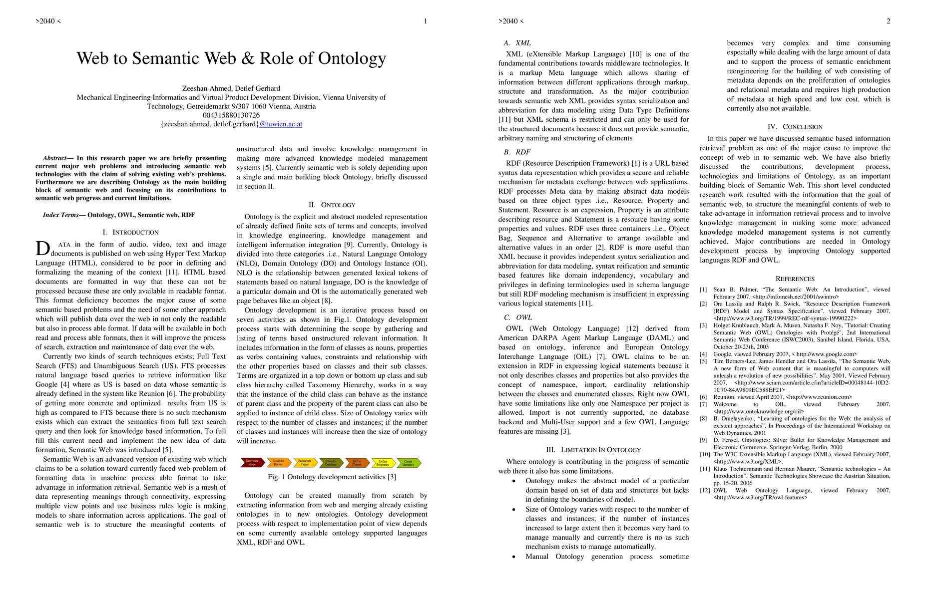 Briefly presented current major web problems and introduced semantic web technologies with a focus on ontology.