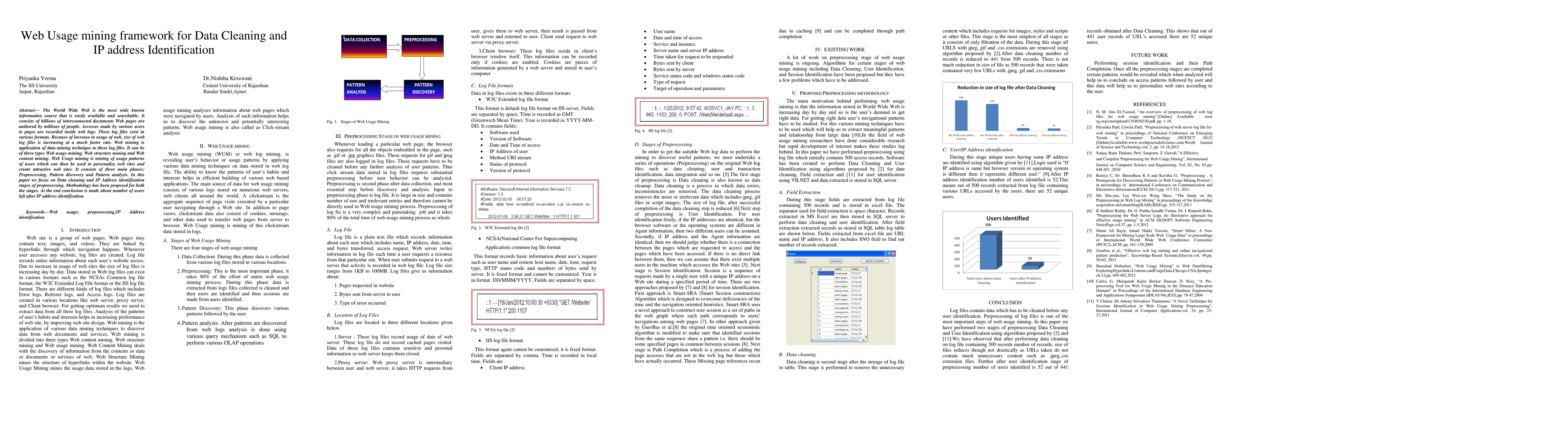 This paper proposes a framework for web usage mining focusing on data cleaning and IP address identification during the preprocessing phase. It outlines methodologies for these stages and concludes with an analysis of remaining users after IP address identification.