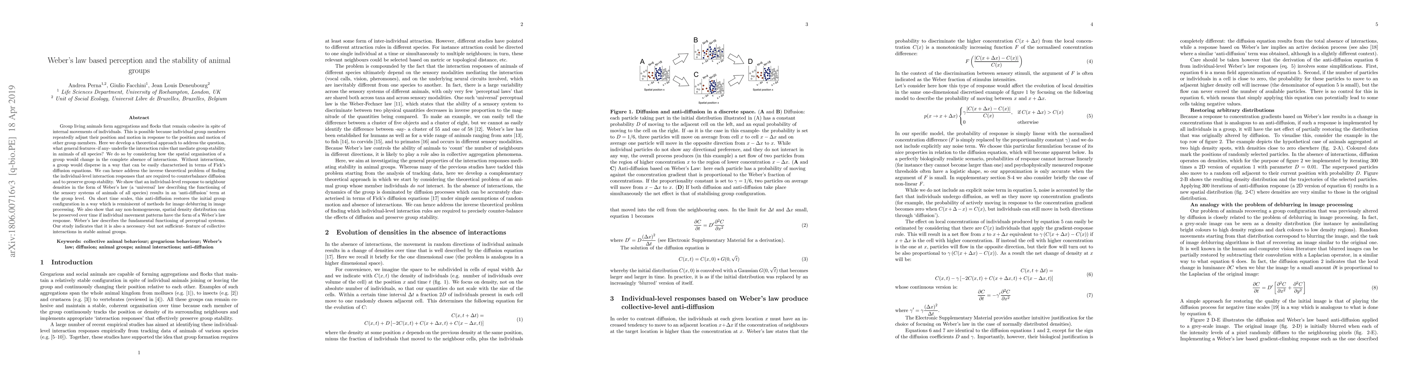 Research finds that Weber's law, a universal principle governing animal sensory systems, helps maintain stability in group movements by countering diffusion, allowing groups to preserve their initial configuration over time.