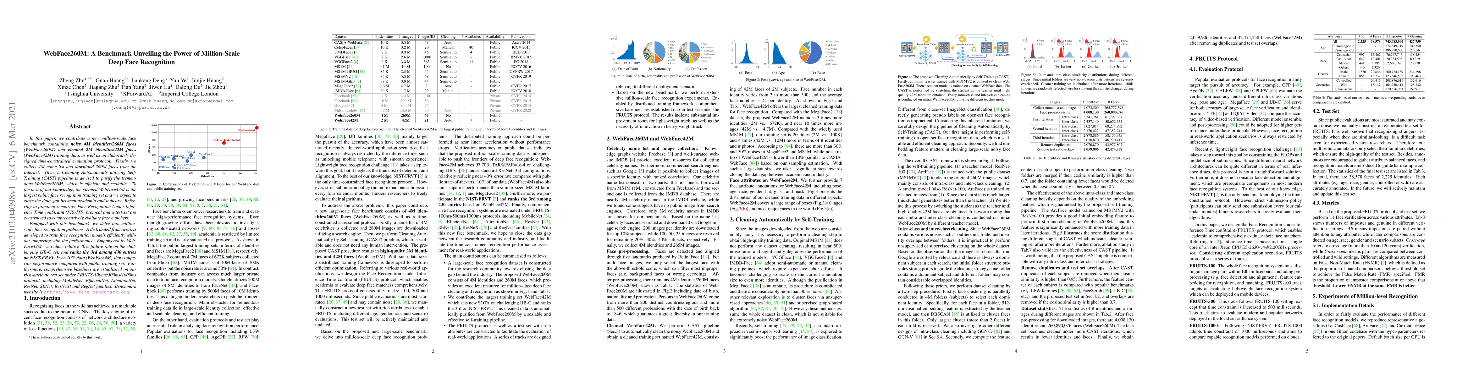 This paper introduces WebFace260M, a new million-scale face recognition benchmark with 260M faces and 4M identities, and a cleaned subset WebFace42M for training. It also presents a time-constrained evaluation protocol, FRUITS, and demonstrates significant improvements in face recognition performance using the new dataset.