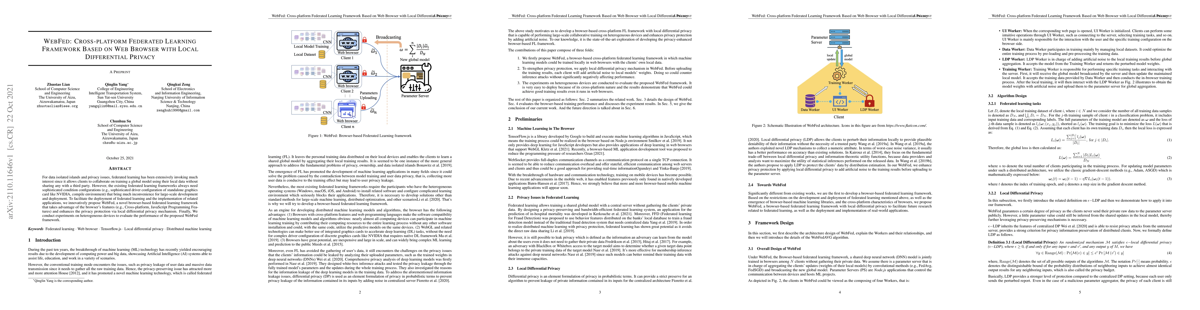 WebFed is a cross-platform federated learning framework based on web browsers, designed to simplify deployment and enhance privacy through local differential privacy. Experiments on diverse devices demonstrate its performance.