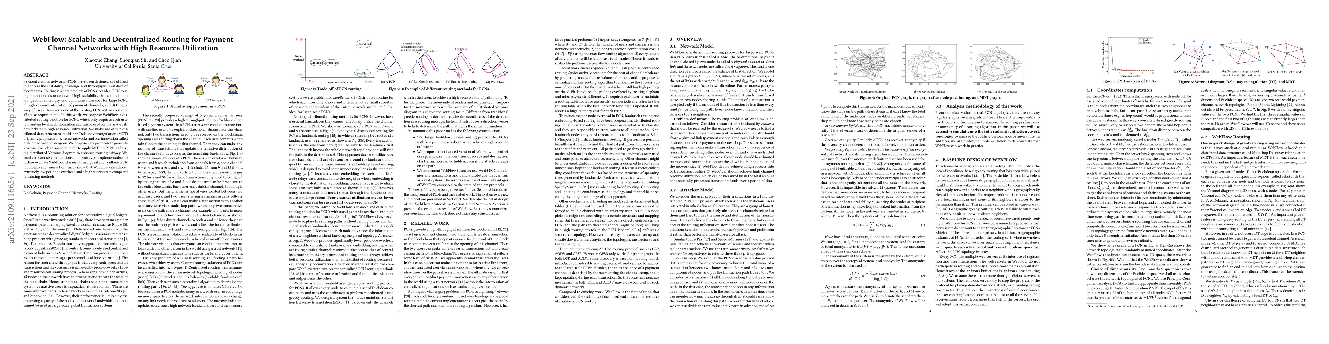 WebFlow proposes a scalable and decentralized routing solution for payment channel networks (PCNs) that maintains low per-node memory and communication costs while achieving high resource utilization and user privacy. The method utilizes multi-hop Delaunay triangulation and a distributed Voronoi diagram to optimize routing and privacy.