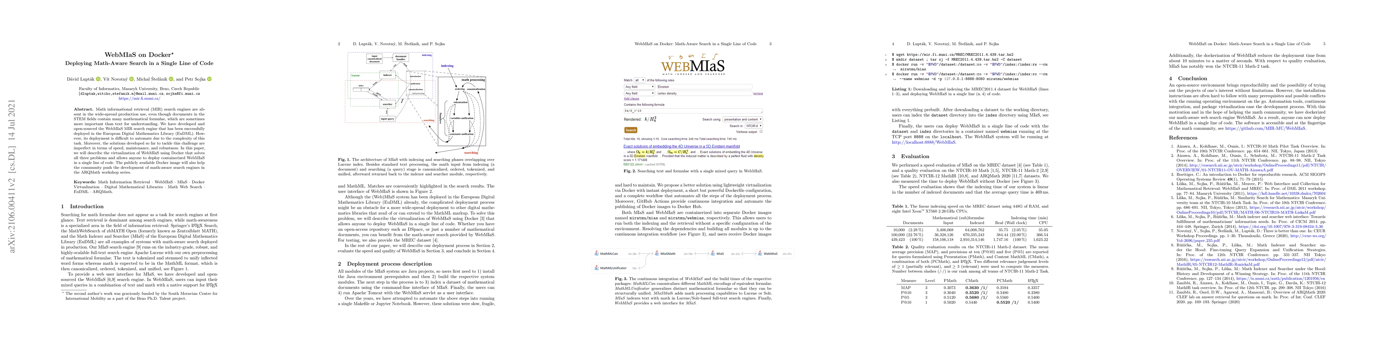 This research is important because it provides an open-source environment for reproducibility and ease of use, making it accessible to the math community. The Dockerization of WebMIaS also reduces deployment time and improves maintainability.