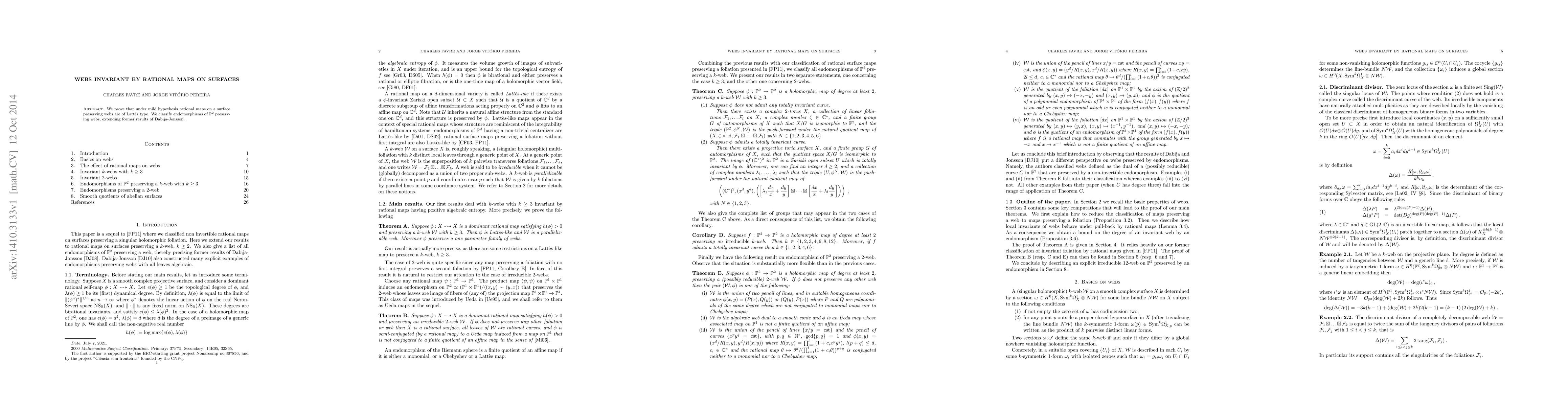 Summary: This paper proves that rational maps on surfaces that preserve webs are of Lattès type under mild conditions and classifies endomorphisms of P^2 that maintain webs, extending previous work by Dabija-Jonsson.