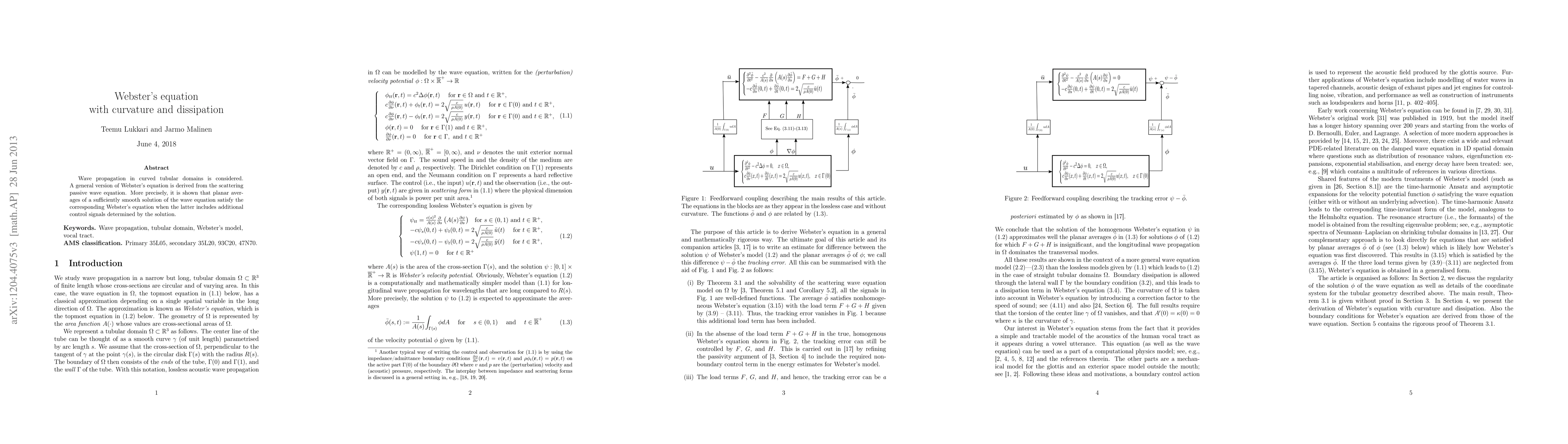 Wave propagation in curved tubular domains is considered. A general version of Webster's equation is derived from the scattering passive wave equation. More precisely, it is shown that planar averages of a sufficiently smooth solution of the wave equation satisfy the corresponding Webster's equation when the latter includes additional control signals determined by the solution.