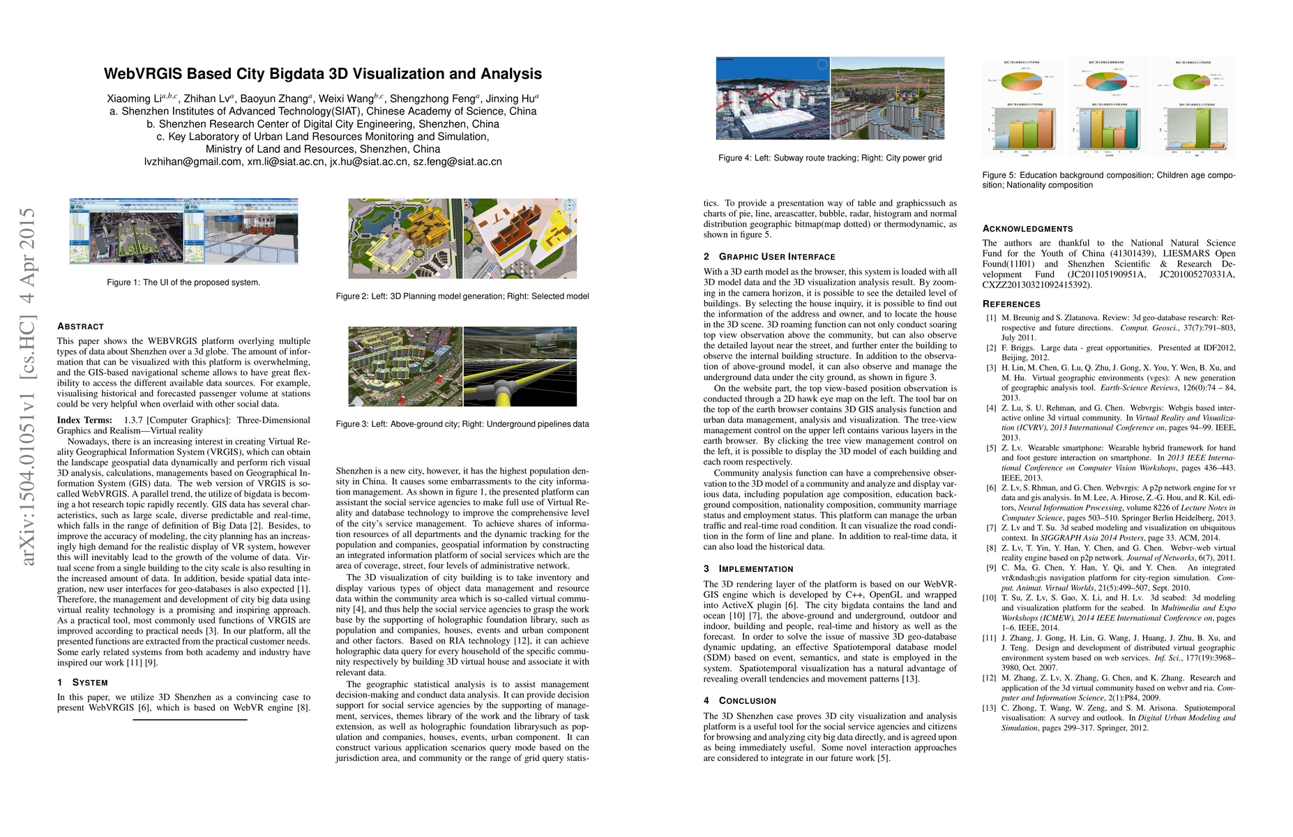 This paper shows the WEBVRGIS platform overlying multiple types of data about Shenzhen over a 3d globe. The amount of information that can be visualized with this platform is overwhelming, and the GIS-based navigational scheme allows to have great flexibility to access the different available data sources. For example,visualising historical and forecasted passenger volume at stations could be very helpful when overlaid with other social data.