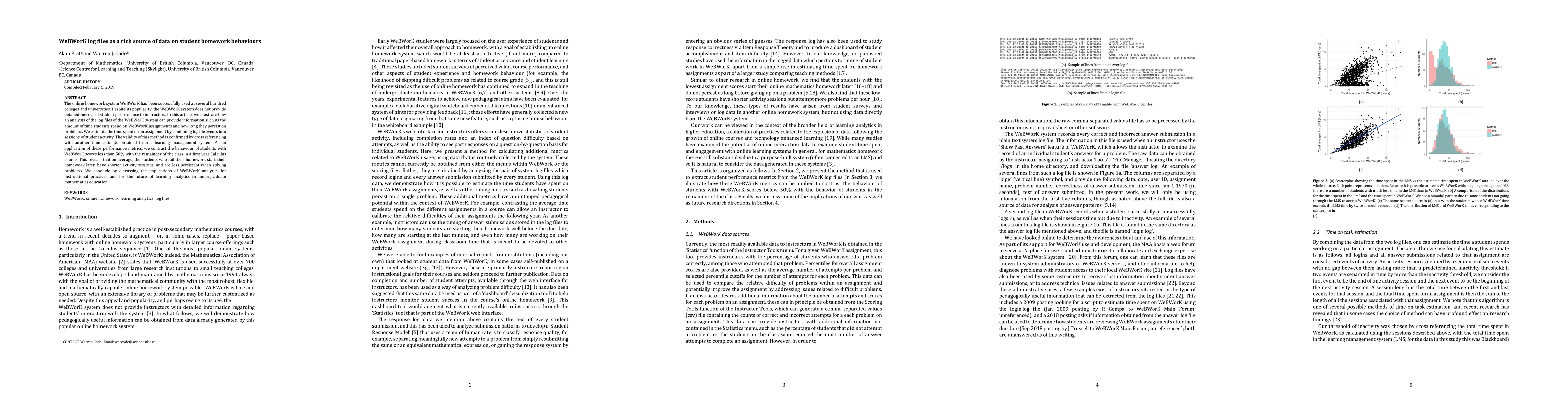 This paper explores the use of WeBWorK log files to analyze student homework behaviors, revealing that students who score below 50% tend to start later, have shorter sessions, and are less persistent. The study highlights the potential of WeBWorK analytics to inform instructional practices and advance learning analytics in undergraduate mathematics education.