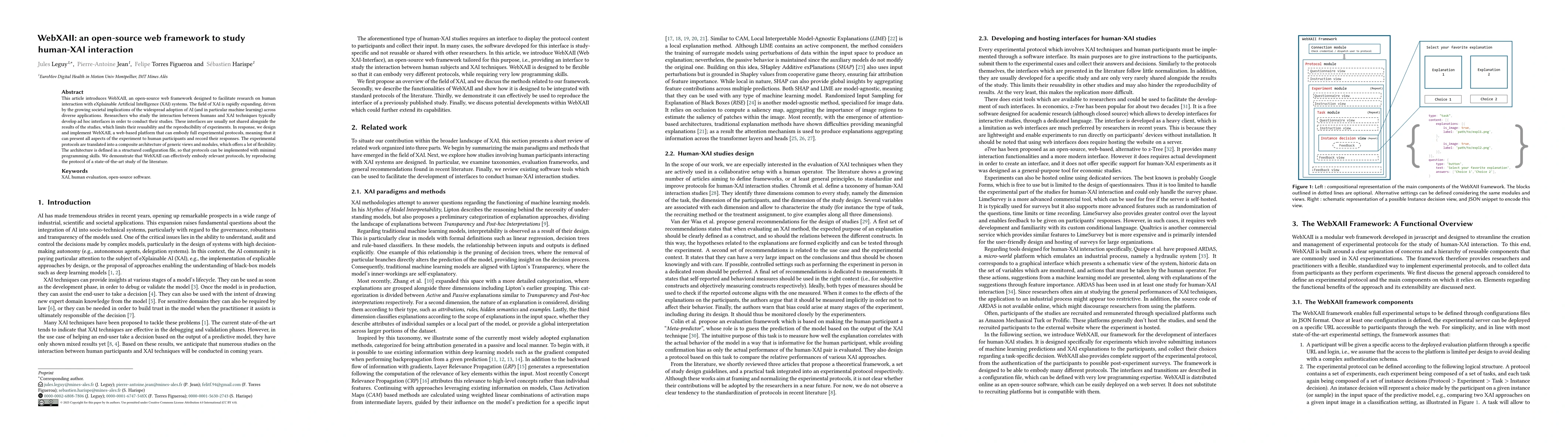 WebXAII is an open-source web framework for studying human-XAI interaction, addressing the lack of reusable and reproducible interfaces in XAI research. It offers a flexible, configuration-driven architecture for embodying experimental protocols, enabling researchers with minimal programming skills to design and conduct studies.