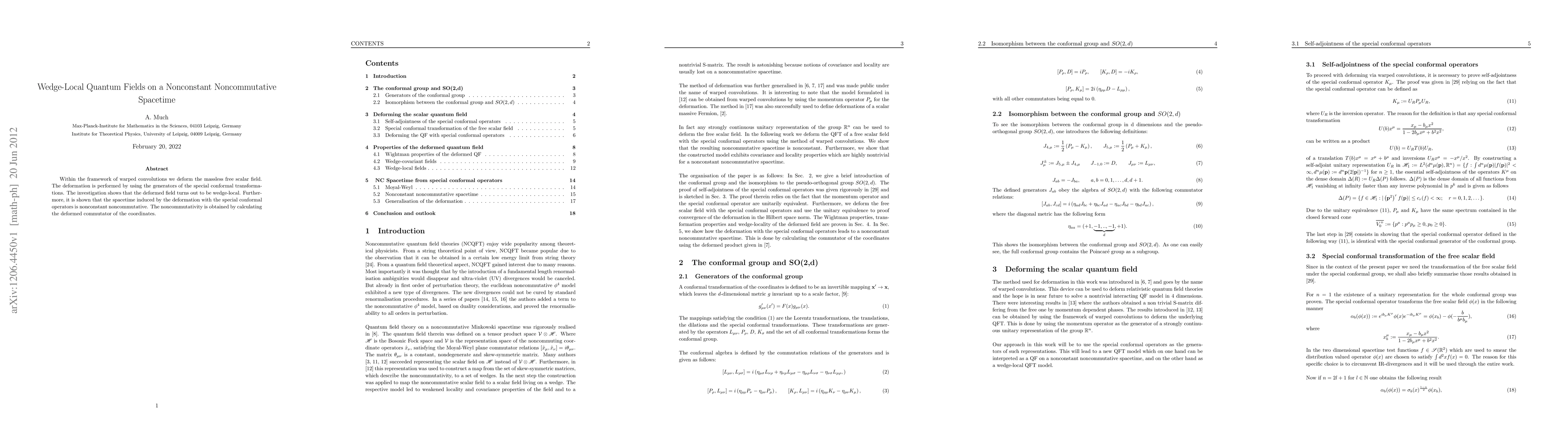 This paper deforms the massless free scalar field using special conformal transformations within warped convolutions, resulting in a wedge-local field. The deformation also induces a nonconstant noncommutative spacetime, as evidenced by the calculation of the deformed commutator of coordinates.