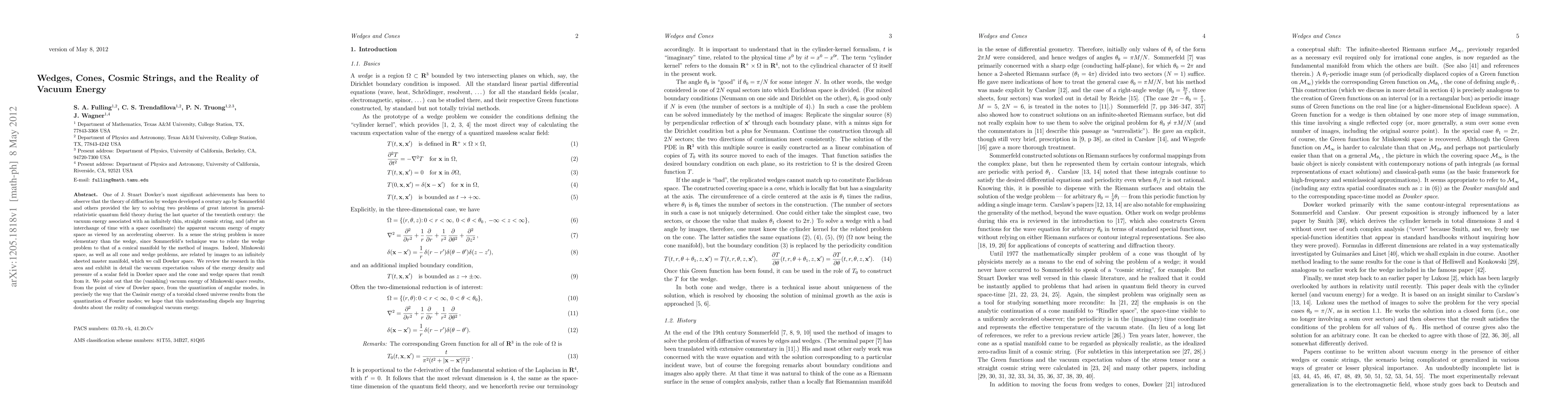 One of J. Stuart Dowker's most significant achievements has been to observe that the theory of diffraction by wedges developed a century ago by Sommerfeld and others provided the key to solving two problems of great interest in general-relativistic quantum field theory during the last quarter of the twentieth century: the vacuum energy associated with an infinitely thin, straight cosmic string, and (after an interchange of time with a space coordinate) the apparent vacuum energy of empty space as viewed by an accelerating observer. In a sense the string problem is more elementary than the wedge, since Sommerfeld's technique was to relate the wedge problem to that of a conical manifold by the method of images. Indeed, Minkowski space, as well as all cone and wedge problems, are related by images to an infinitely sheeted master manifold, which we call Dowker space. We review the research in this area and exhibit in detail the vacuum expectation values of the energy density and pressure of a scalar field in Dowker space and the cone and wedge spaces that result from it. We point out that the (vanishing) vacuum energy of Minkowski space results, from the point of view of Dowker space, from the quantization of angular modes, in precisely the way that the Casimir energy of a toroidal closed universe results from the quantization of Fourier modes; we hope that this understanding dispels any lingering doubts about the reality of cosmological vacuum energy.