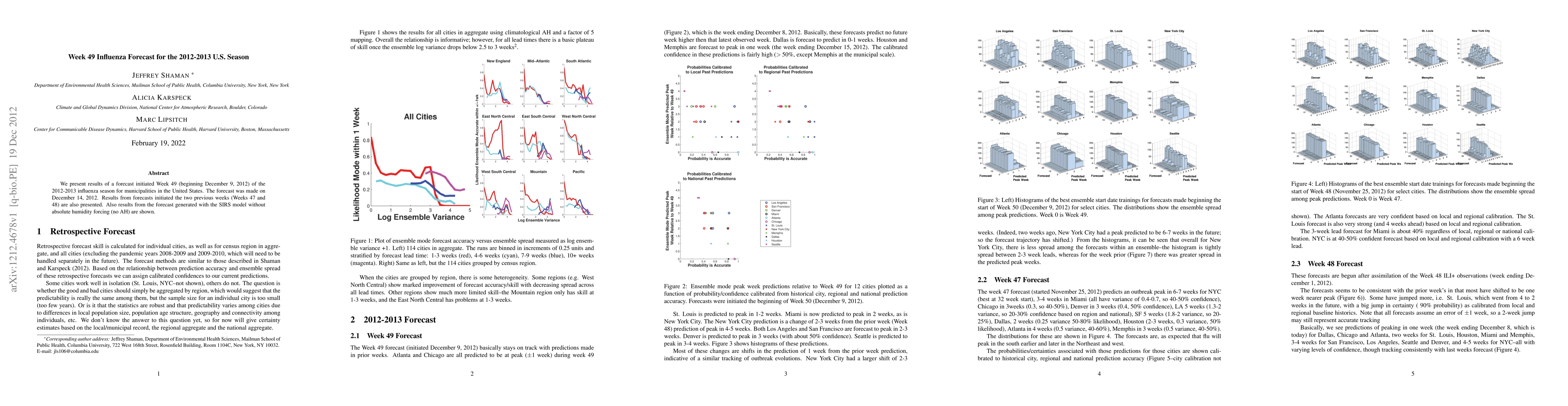 We present results of a forecast initiated Week 49 (beginning December 9, 2012) of the 2012-2013 influenza season for municipalities in the United States. The forecast was made on December 14, 2012. Results from forecasts initiated the two previous weeks (Weeks 47 and 48) are also presented. Also results from the forecast generated with the SIRS model without AH forcing (no AH) are shown