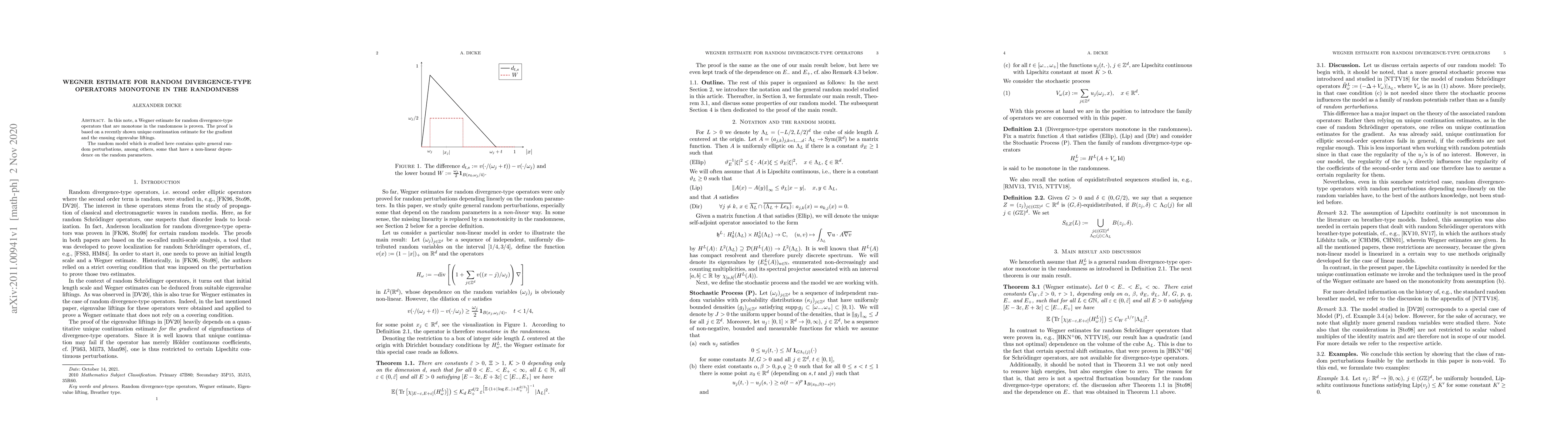 A Wegner estimate for random divergence-type operators that are monotone in randomness has been proven, using a unique continuation estimate for the gradient and eigenvalue liftings.