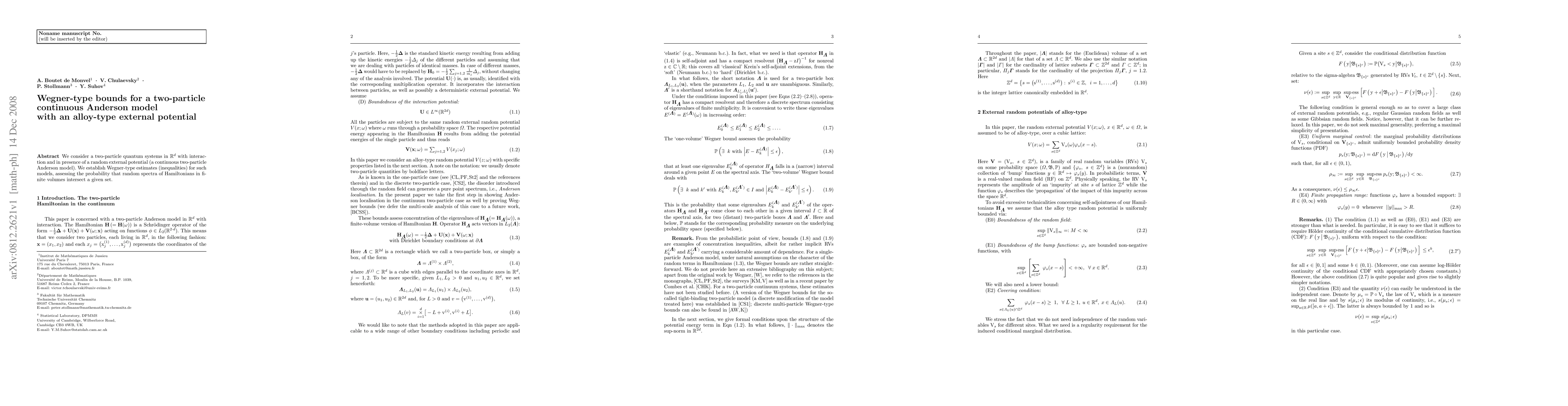 Summary: This paper establishes Wegner-type bounds for a two-particle continuous Anderson model with an alloy-type random potential, providing estimates on the probability of intersections between random spectra of Hamiltonians in finite volumes.
