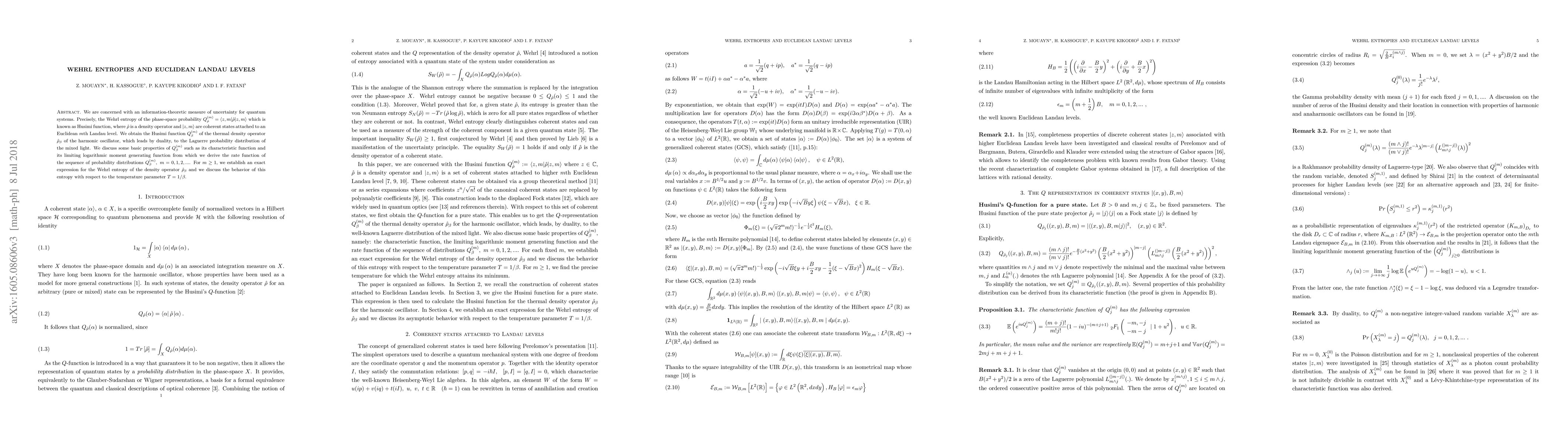 We are concerned with an information-theoretic measure of uncertainty for quantum systems. Precisely, the Wehrl entropy of the phase-space probability $Q^{(m)}_{\hat{\rho}}=\left\langle z,m|\hat{\rho}|z,m\right\rangle $ which is known as Husimi function, where $\hat{\rho}$ is a density operator and $% \left|z,m\right\rangle $ are coherent states attached to an Euclidean $m$th Landau level. We obtain the Husimi function $Q^{(m)}_{\beta}$ of the thermal density operator $\hat{\rho}_{\beta}$ of the harmonic oscillator, which leads by duality, to the Laguerre probability distribution of the mixed light. We discuss some basic properties of $Q^{(m)}_{\beta}$ such as its characteristic function and its limiting logarithmic moment generating function from which we derive the rate function of the sequence of probability distributions $Q^{(m)}_{\beta},\ m=0,1,2,...$. For $m\geq1$, we establish an exact expression for the Wehrl entropy of the density operator $% \hat{\rho}_{\beta}$ and we discuss the behavior of this entropy with respect to the temperature parameter $T=1/\beta$