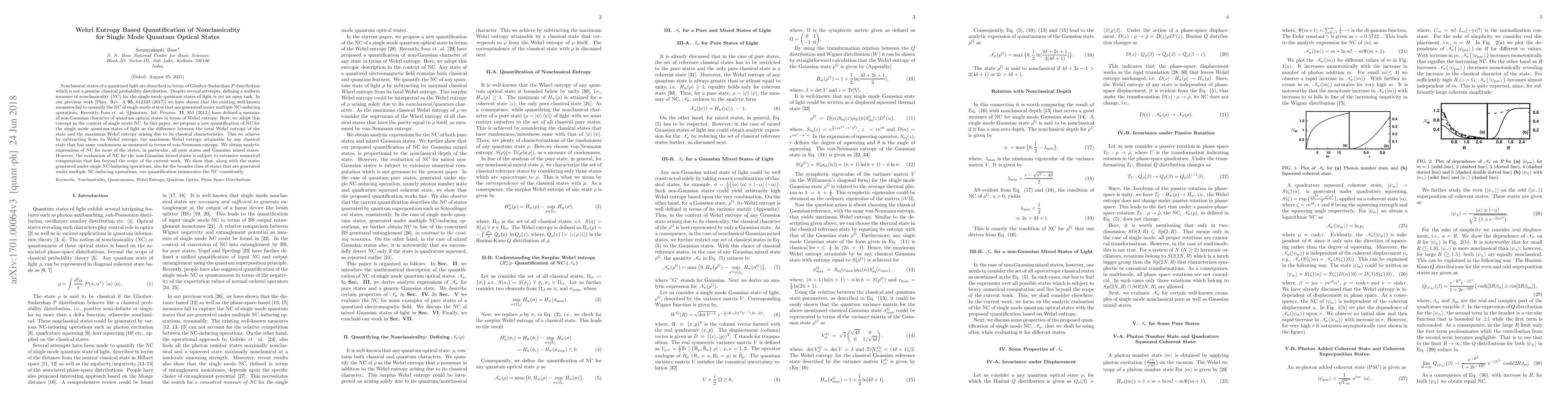 This paper proposes a new measure of nonclassicality (NC) for single mode quantum optical states using Wehrl entropy, defined as the difference between the total Wehrl entropy and the maximum Wehrl entropy for classical states with the same randomness. This approach consistently quantifies NC for both single and multiple NC-inducing operations, providing analytic expressions for pure and Gaussian mixed states.