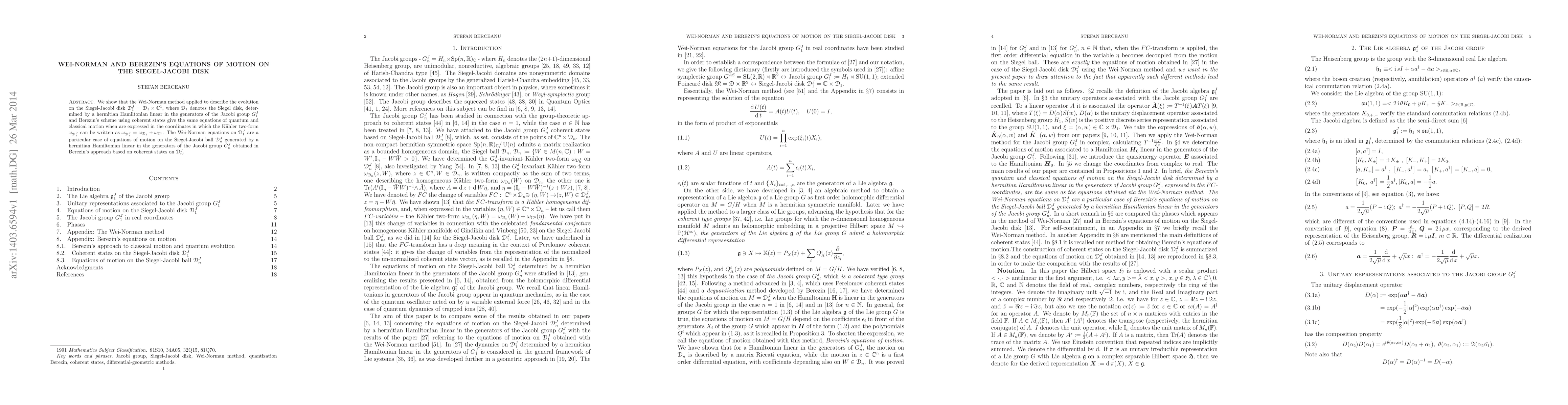 This paper demonstrates that the Wei-Norman method and Berezin's coherent state approach yield identical equations of motion for both quantum and classical systems on the Siegel-Jacobi disk, when expressed in coordinates where the Kähler two-form is decomposed into its components. The Wei-Norman equations are a specific instance of the broader equations derived from Berezin's method on the Siegel-Jacobi ball.