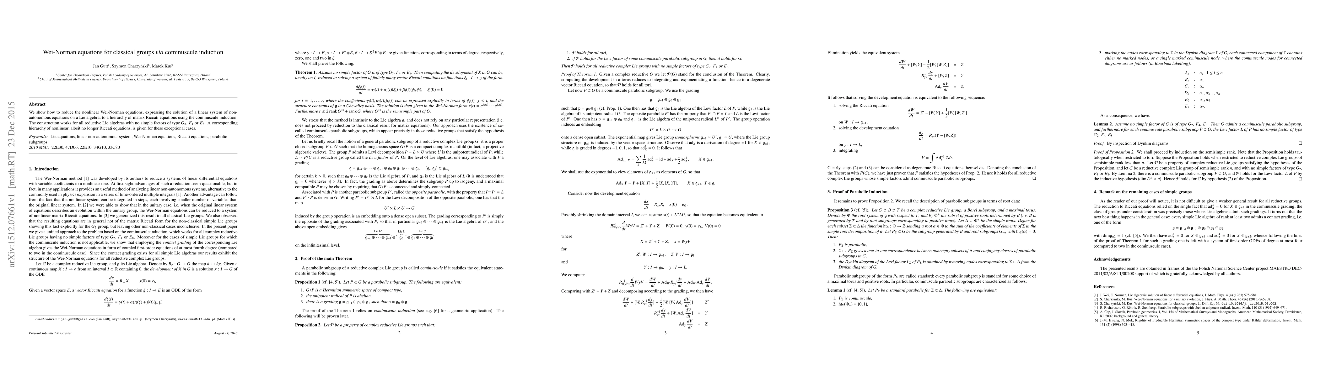 The research utilizes cominuscule induction to reduce nonlinear Wei-Norman equations to a hierarchy of matrix Riccati equations, applicable to all reductive Lie algebras without simple factors of type G2, F4, or E8. For exceptional cases with such simple factors, a corresponding hierarchy of nonlinear equations is provided.