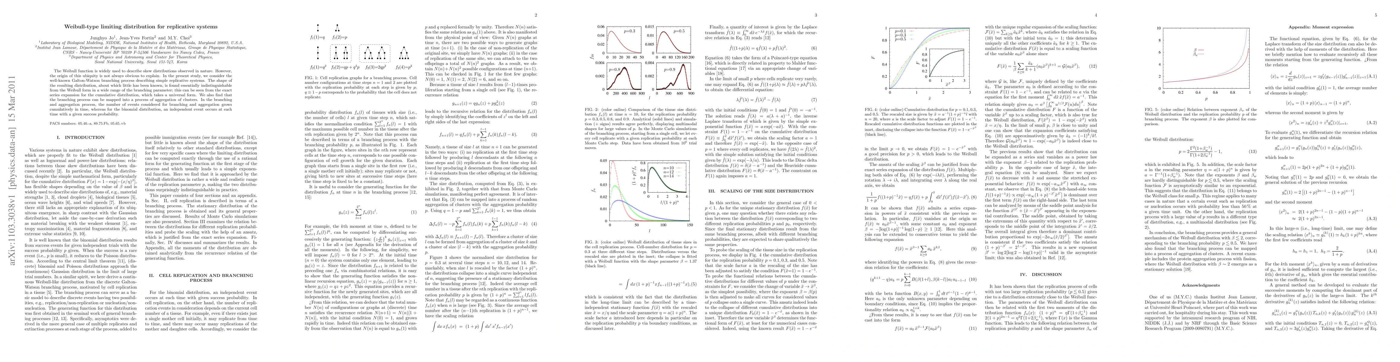 The Weibull function is widely used to describe skew distributions observed in nature. However, the origin of this ubiquity is not always obvious to explain. In the present paper, we consider the well-known Galton-Watson branching process describing simple replicative systems. The shape of the resulting distribution, about which little has been known, is found essentially indistinguishable from the Weibull form in a wide range of the branching parameter; this can be seen from the exact series expansion for the cumulative distribution, which takes a universal form. We also find that the branching process can be mapped into a process of aggregation of clusters. In the branching and aggregation process, the number of events considered for branching and aggregation grows cumulatively in time, whereas, for the binomial distribution, an independent event occurs at each time with a given success probability.