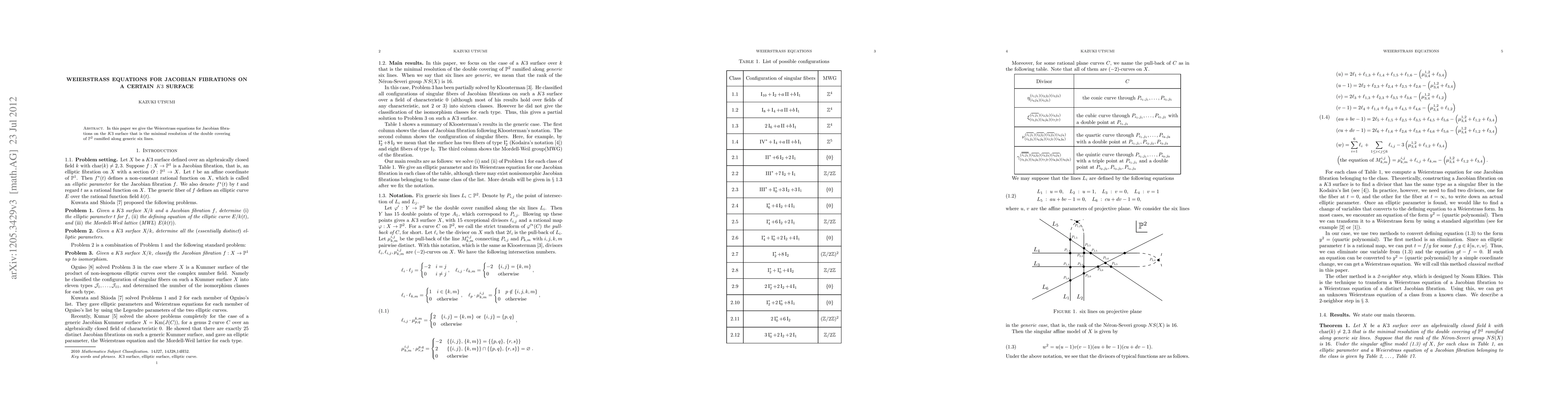 Summary: This paper presents Weierstrass equations for Jacobian fibrations on a specific K3 surface, which is the minimal resolution of a double covering of the projective plane branched along six generic lines. The study provides detailed mathematical formulations for these fibrations.