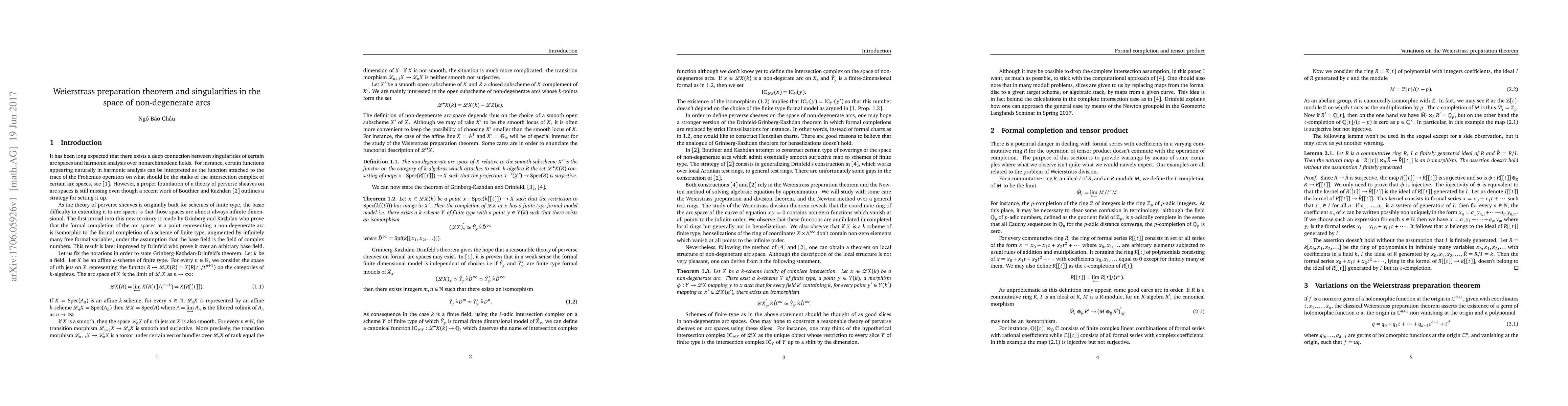 Summary: This paper explores the Weierstrass preparation and division theorems in the context of arbitrary test rings and examines the local structure of singularities in the space of nondegenerate arcs on algebraic varieties, leading to a strengthened version of a Grinberg-Kazhdan and Drinfeld theorem.