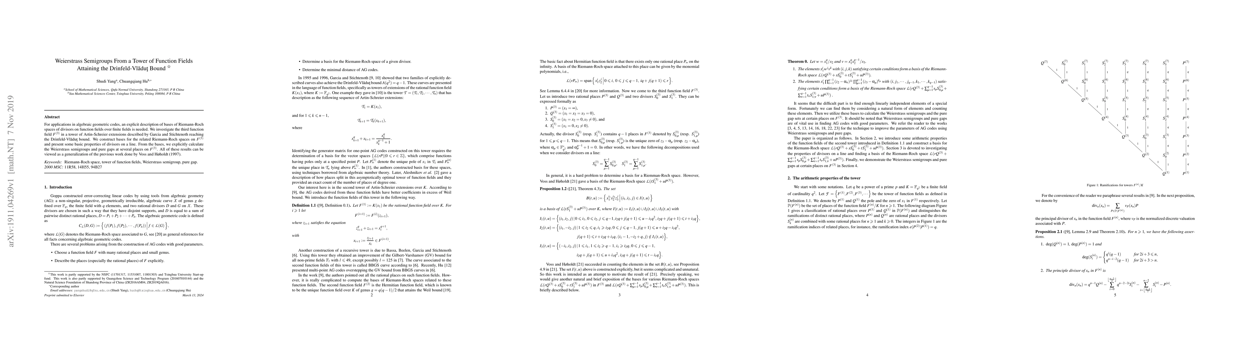This paper constructs bases for Riemann-Roch spaces on the third function field in a tower of Artin-Schreier extensions, reaching the Drinfeld-Vladut bound, and calculates Weierstrass semigroups and pure gaps at several places. These results extend previous work on algebraic geometric codes.